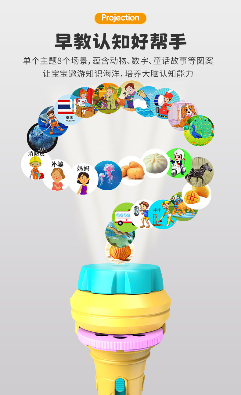 儿童投影手电筒早教认知趣味图案发光玩具婴儿卡通玩具可批发代发