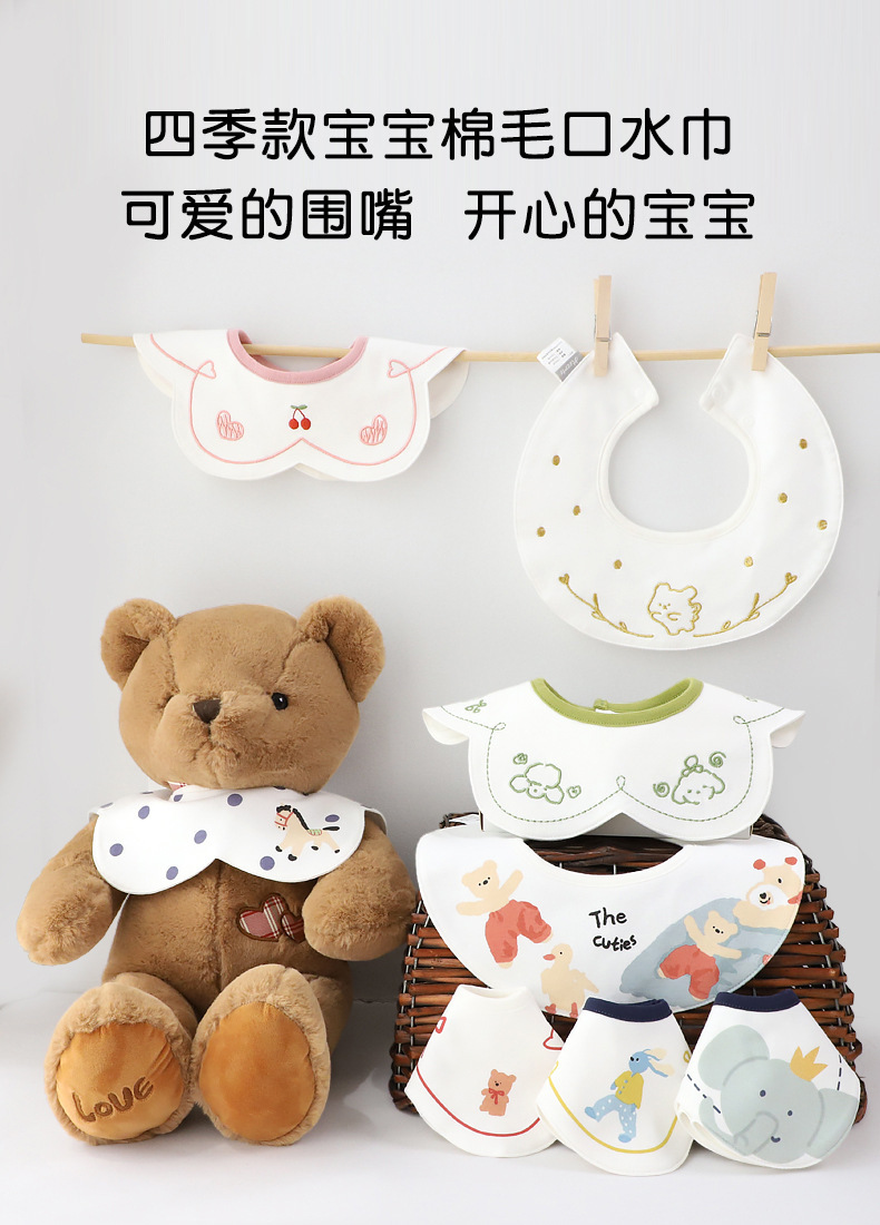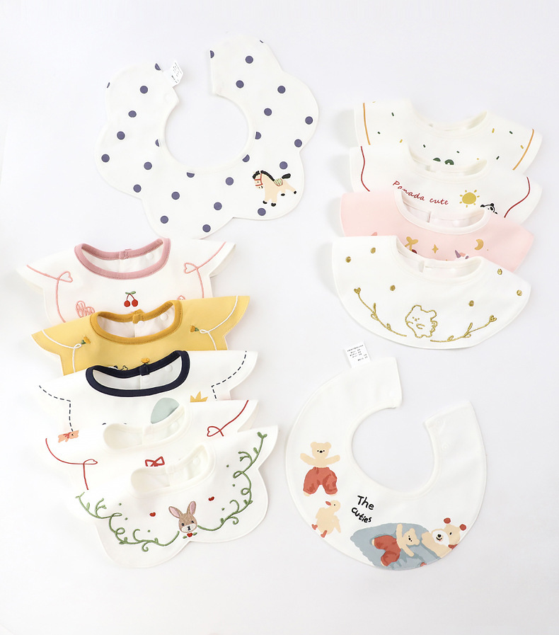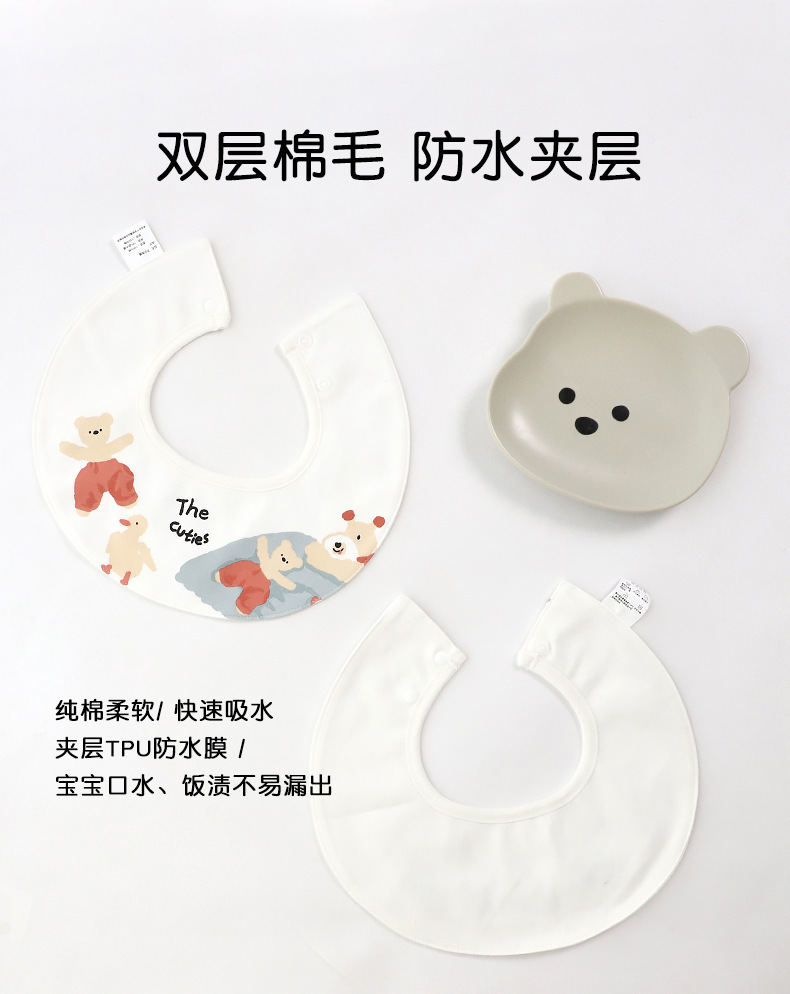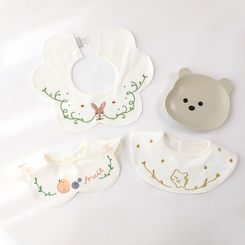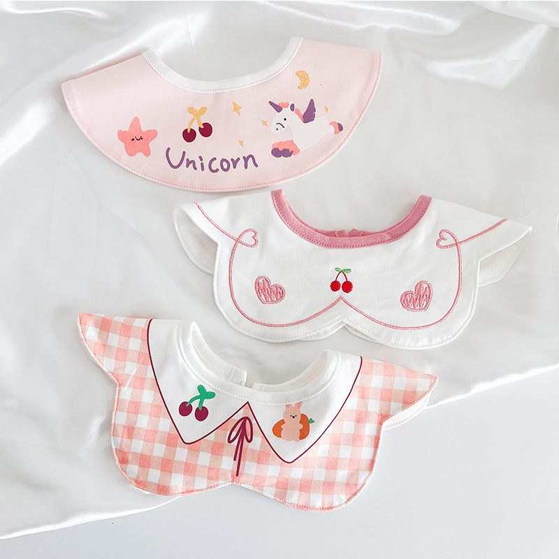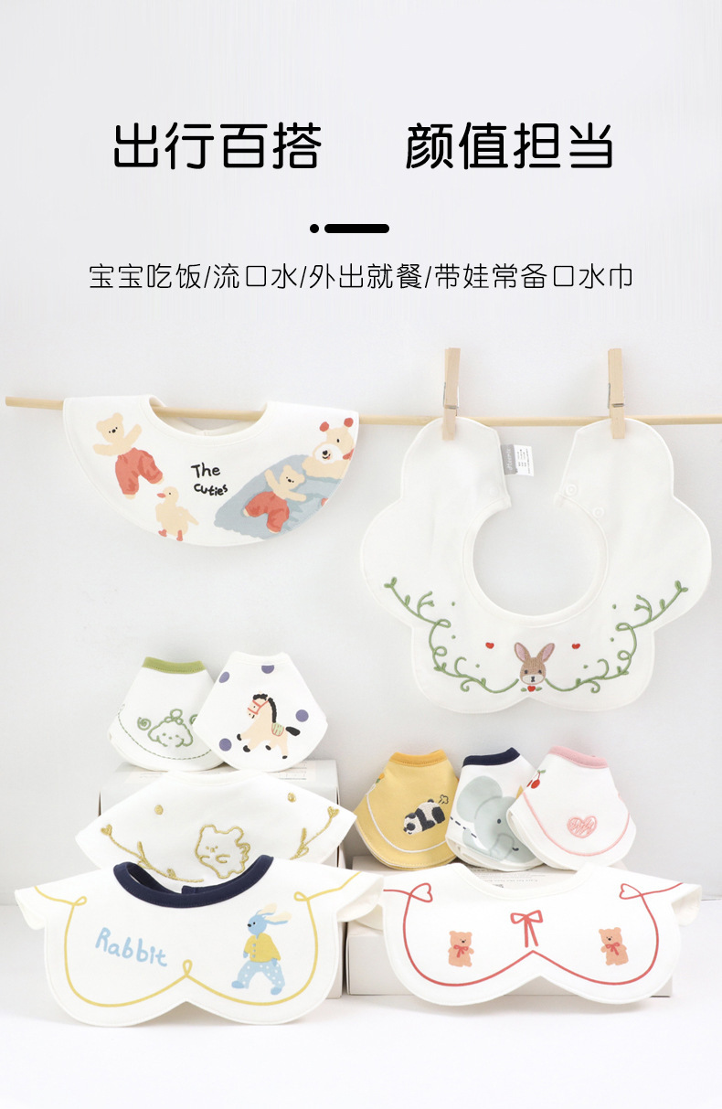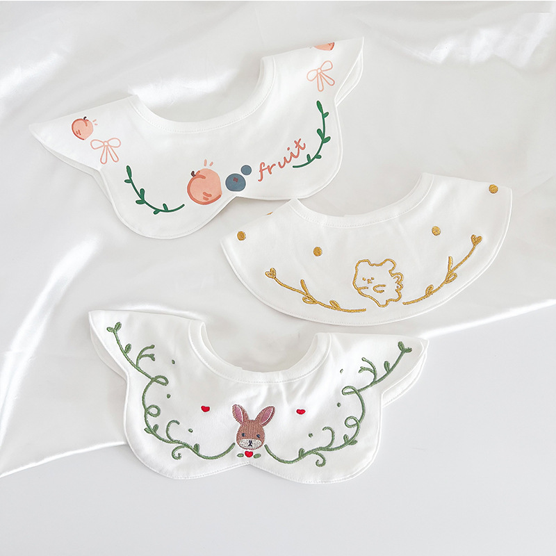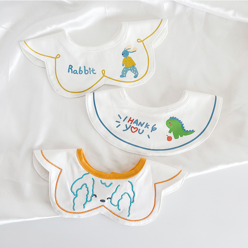 ins风韩版婴儿围嘴宝宝口水巾卡通刺绣防水新生儿围兜口水吃饭兜