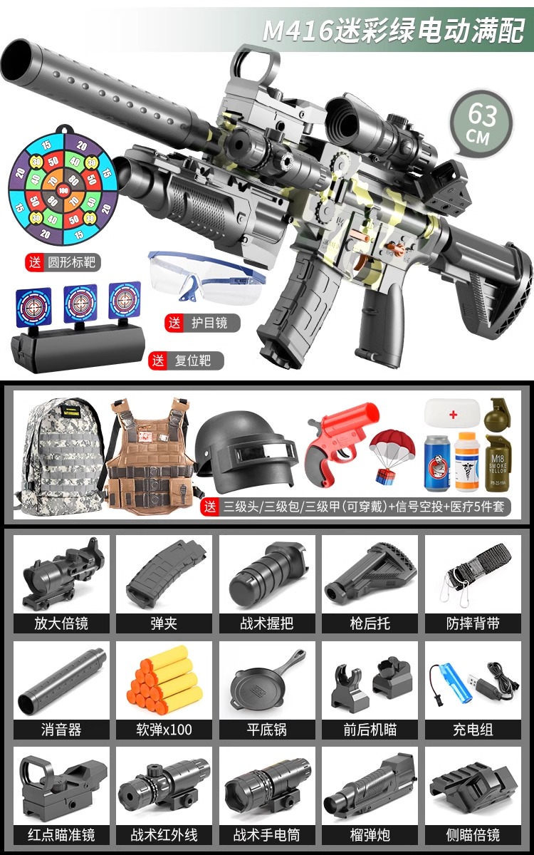 M416电动连发枪玩具仿真儿童软弹枪男孩狙击抢7一9岁机关冲锋步枪