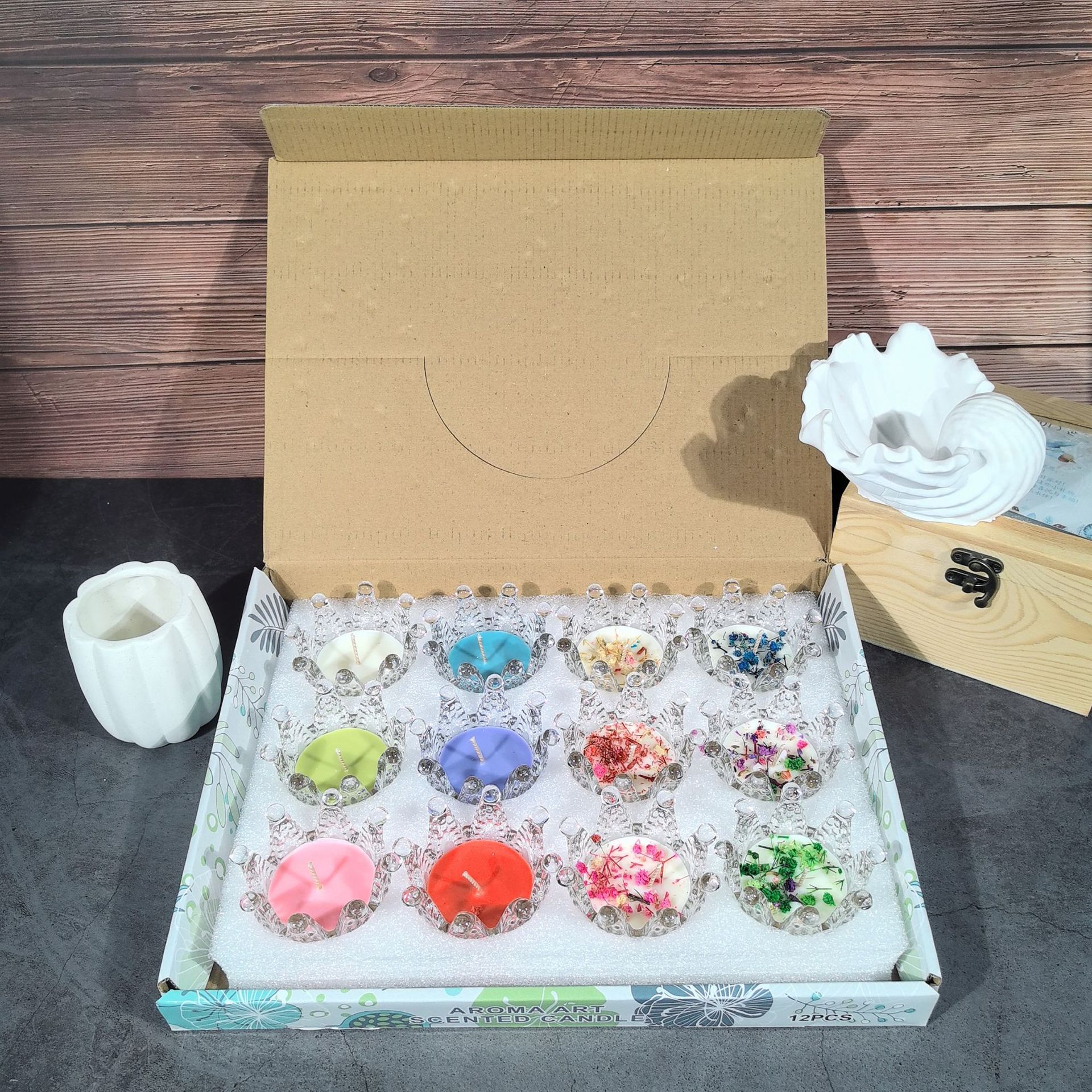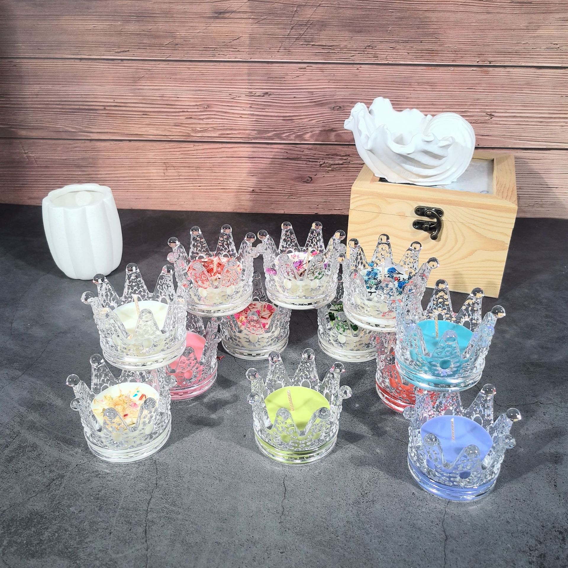 定制跨境皇冠玻璃杯干花香薰蜡烛套装批发香氛蜡烛展示盒出口外贸