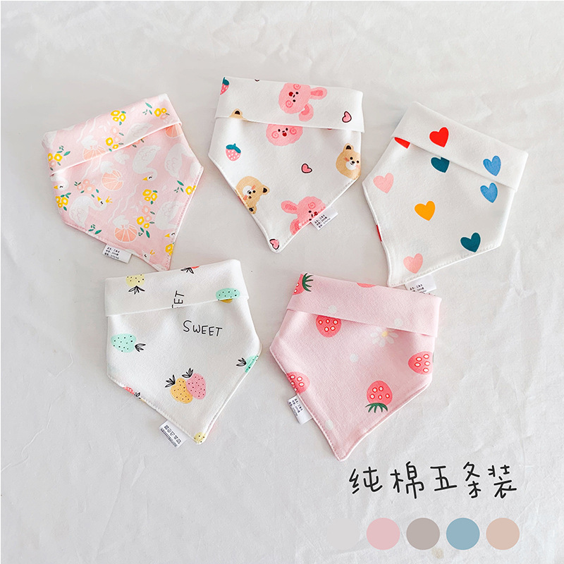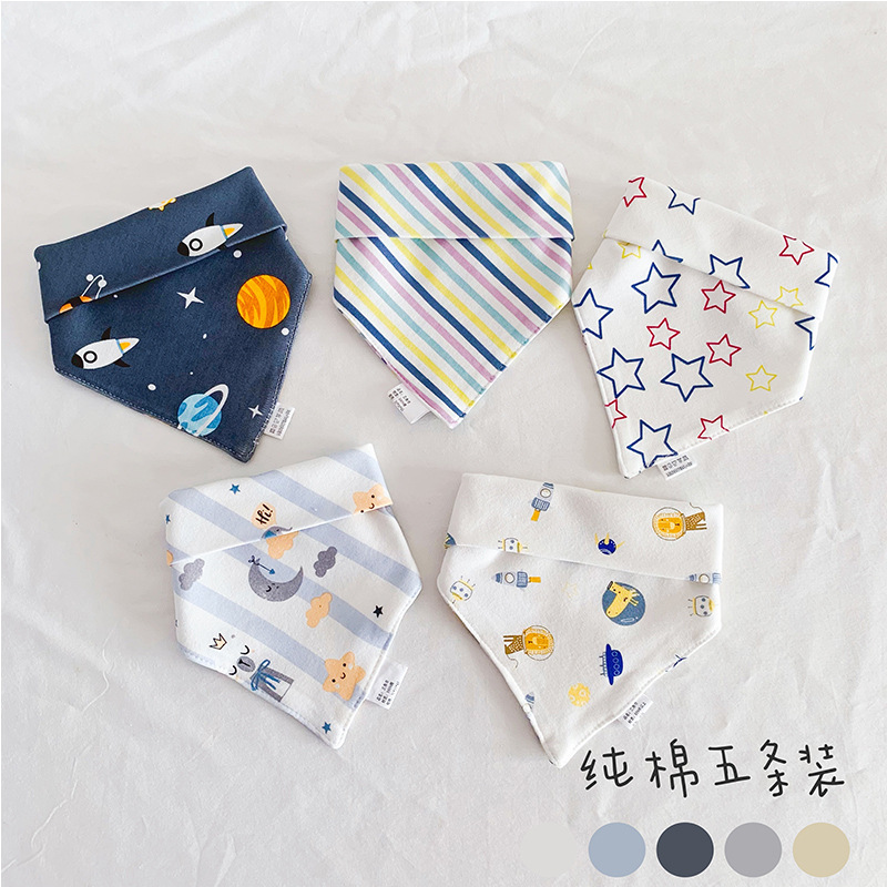 ins韩版新款宝宝三角巾婴儿口水巾儿童围嘴组合5条装棉质柔软围兜