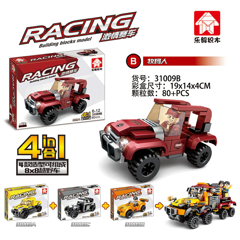 【免邮】兼容乐高积 拼装赛车4合1小颗粒玩具儿童DIY男孩积木名车