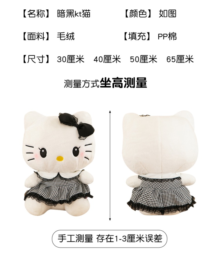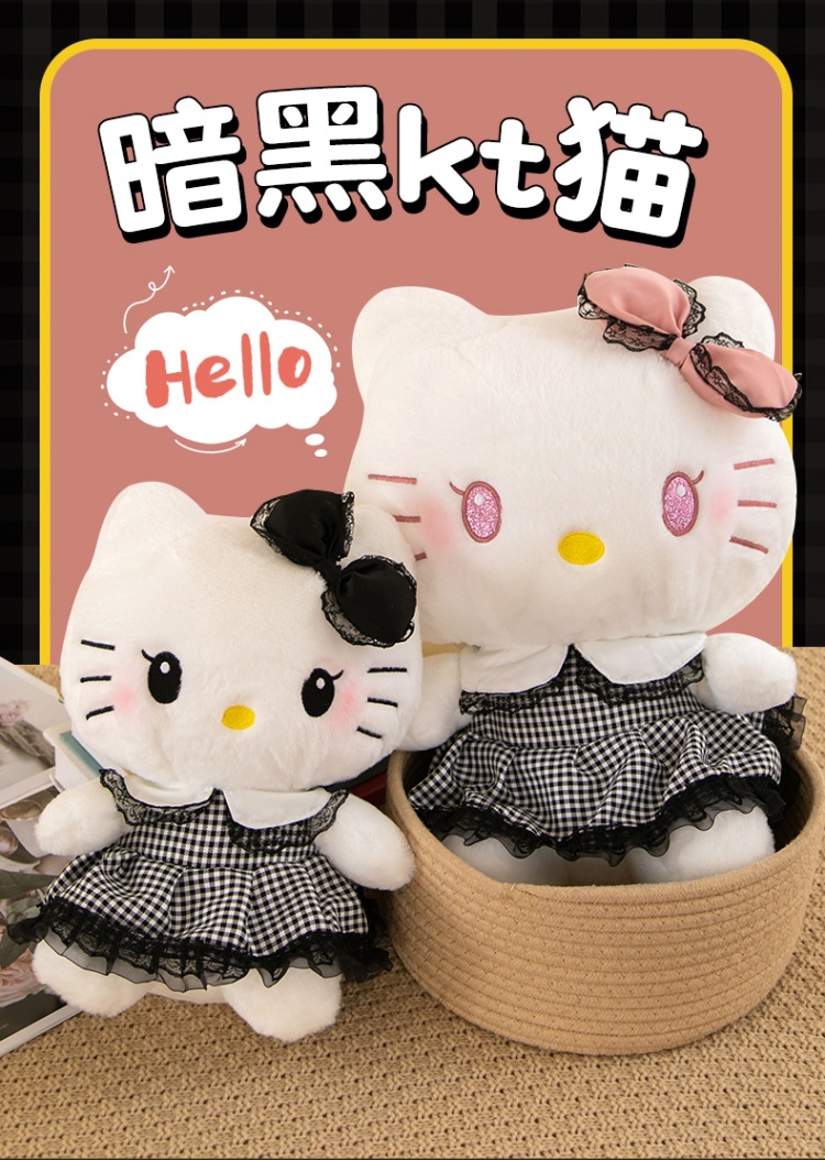 跨境暗黑动物毛绒玩具HelloKitty儿童玩具猫咪公仔抱枕玩偶