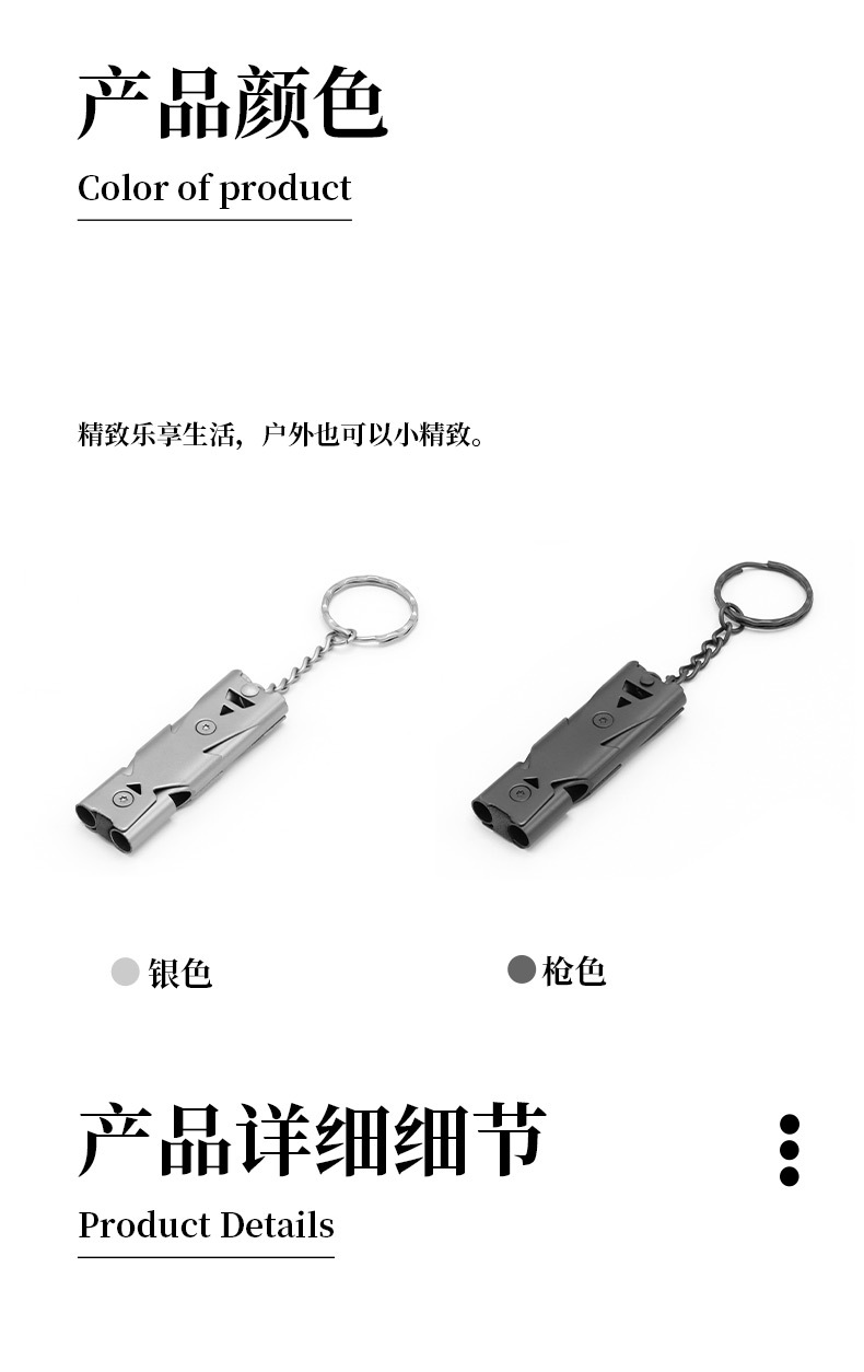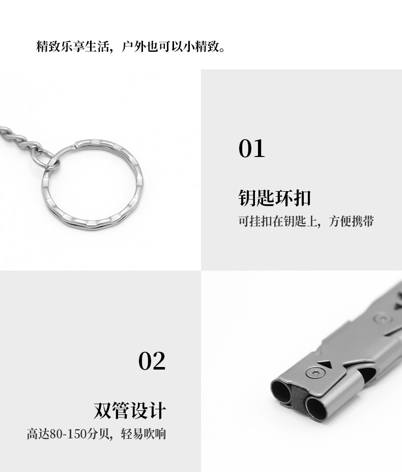 求生口哨 双管爆音哨户外求救哨子不锈钢高频地震救生哨高分贝哨