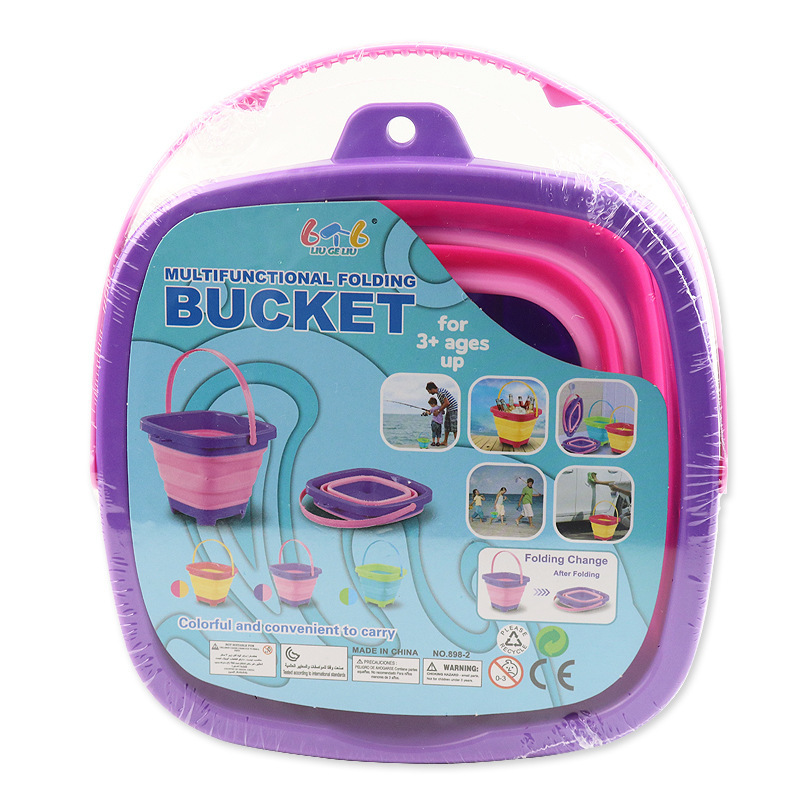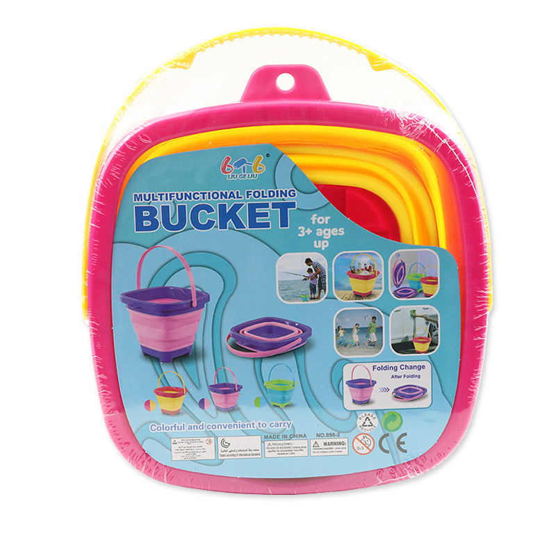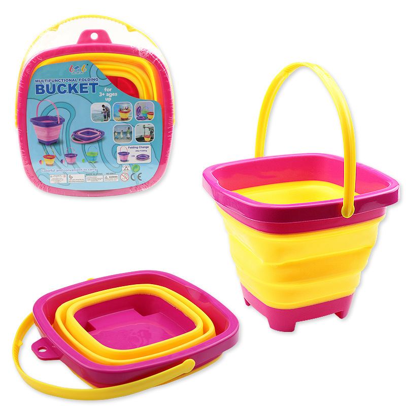 跨境爆款亚马孙速卖通硅胶沙滩桶方形儿童玩具多功能折叠手提水桶