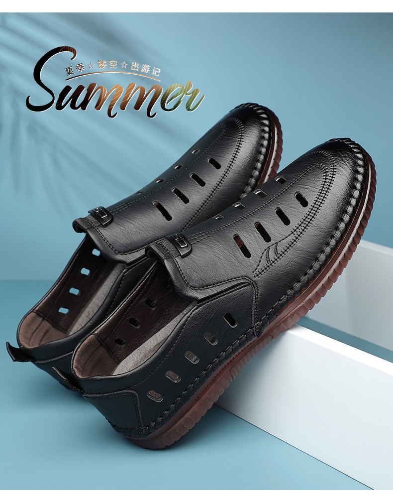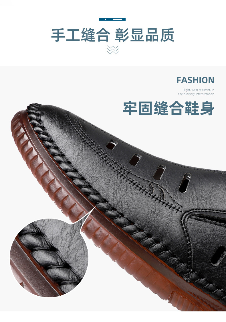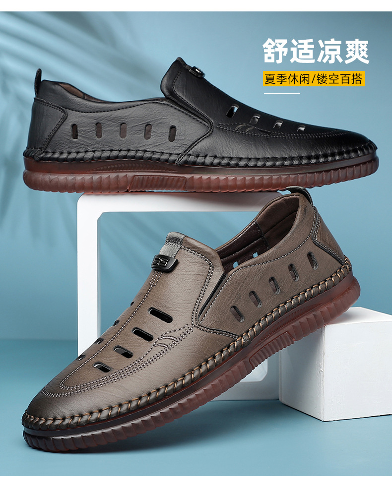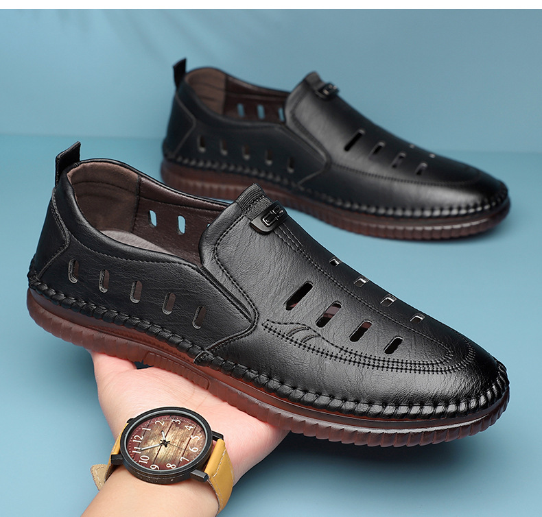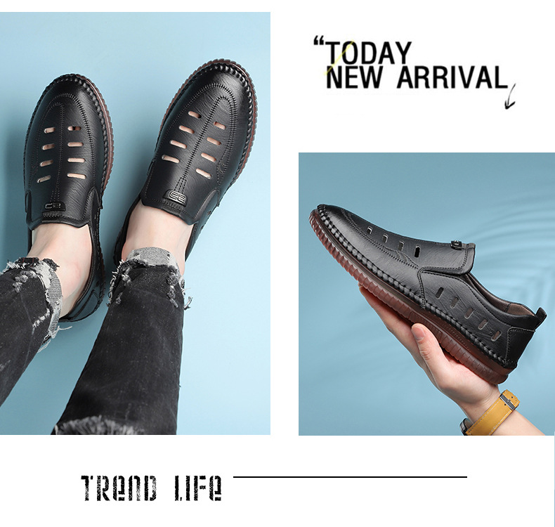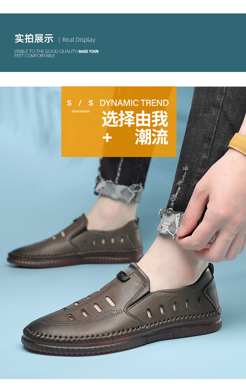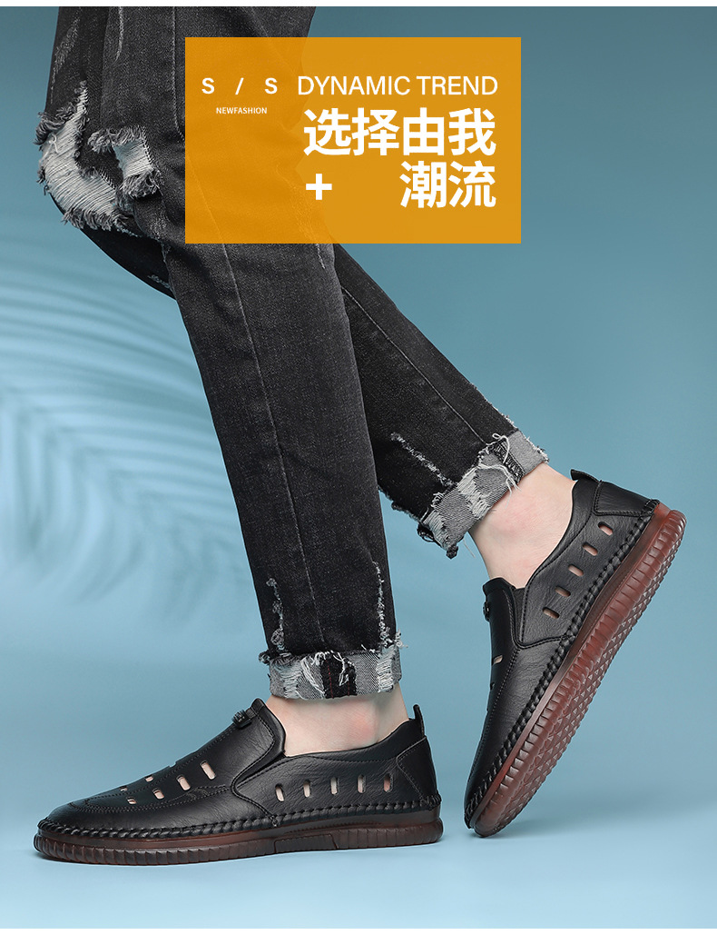 男鞋2024夏季新款凉鞋男款镂空洞洞鞋男士休闲套脚凉皮鞋一件代发