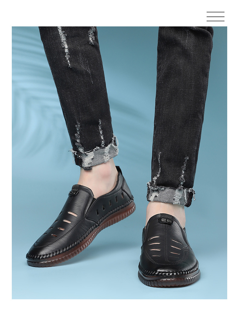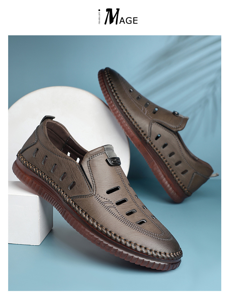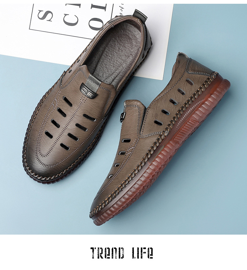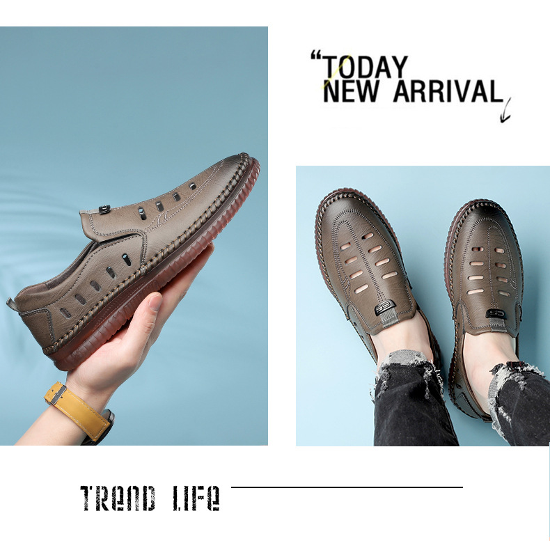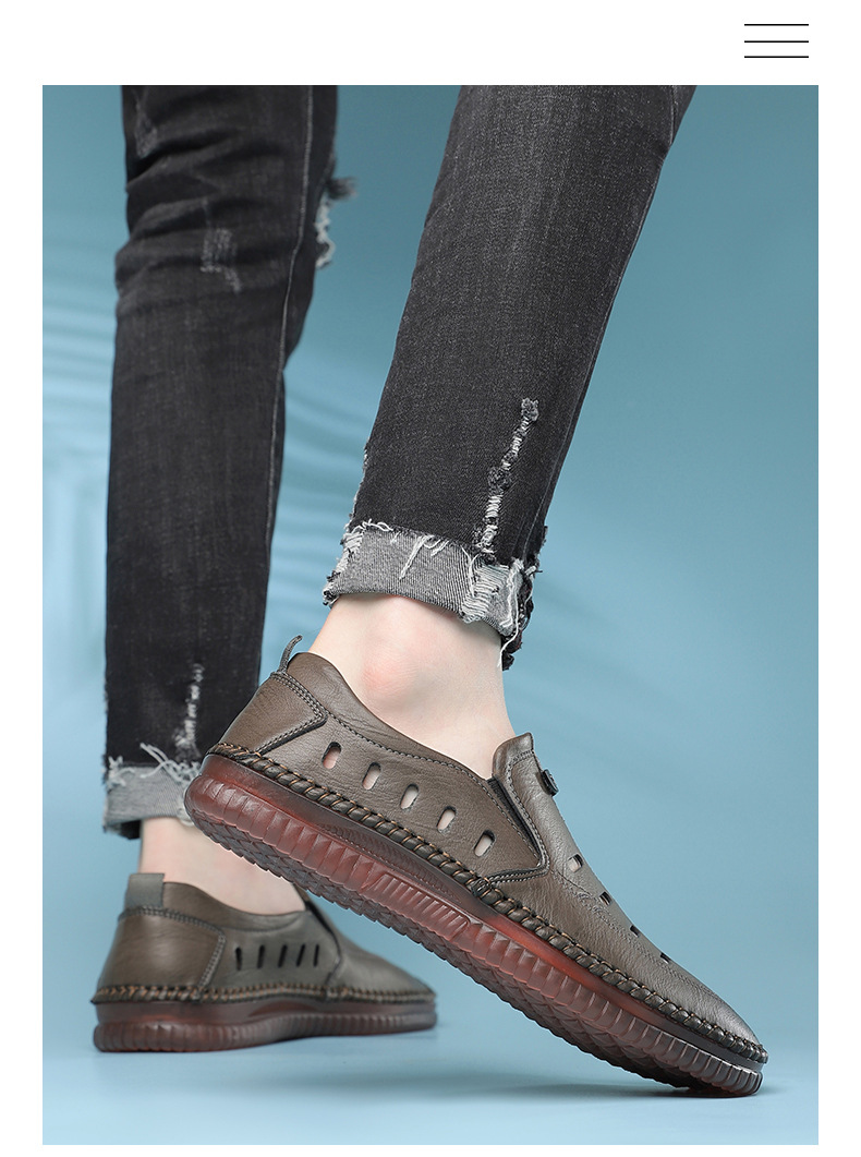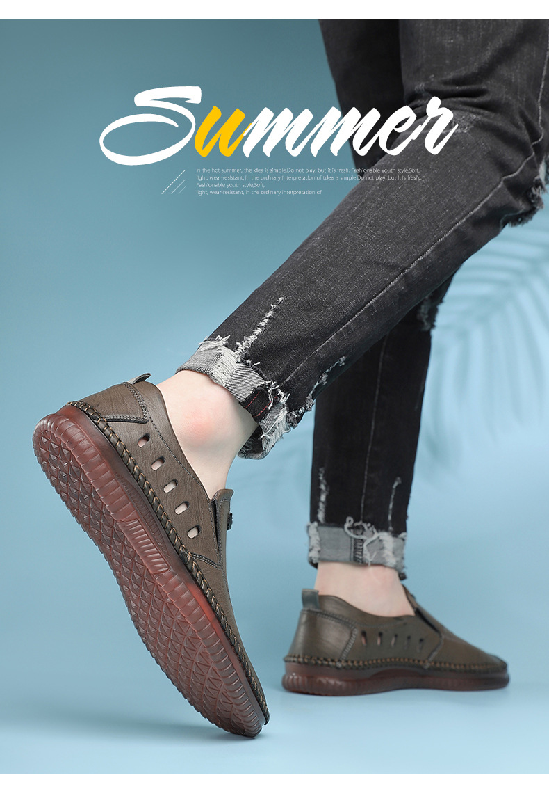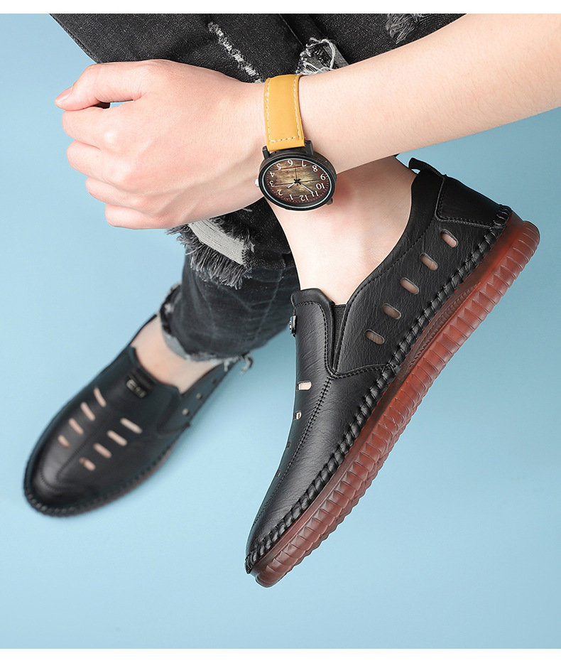 男鞋2024夏季新款凉鞋男款镂空洞洞鞋男士休闲套脚凉皮鞋一件代发