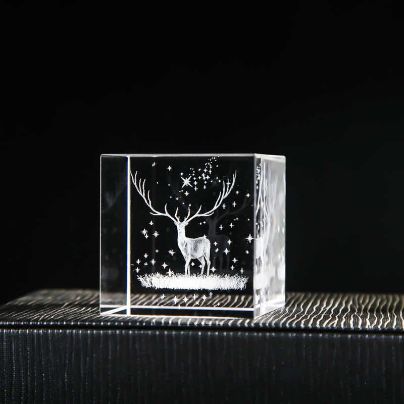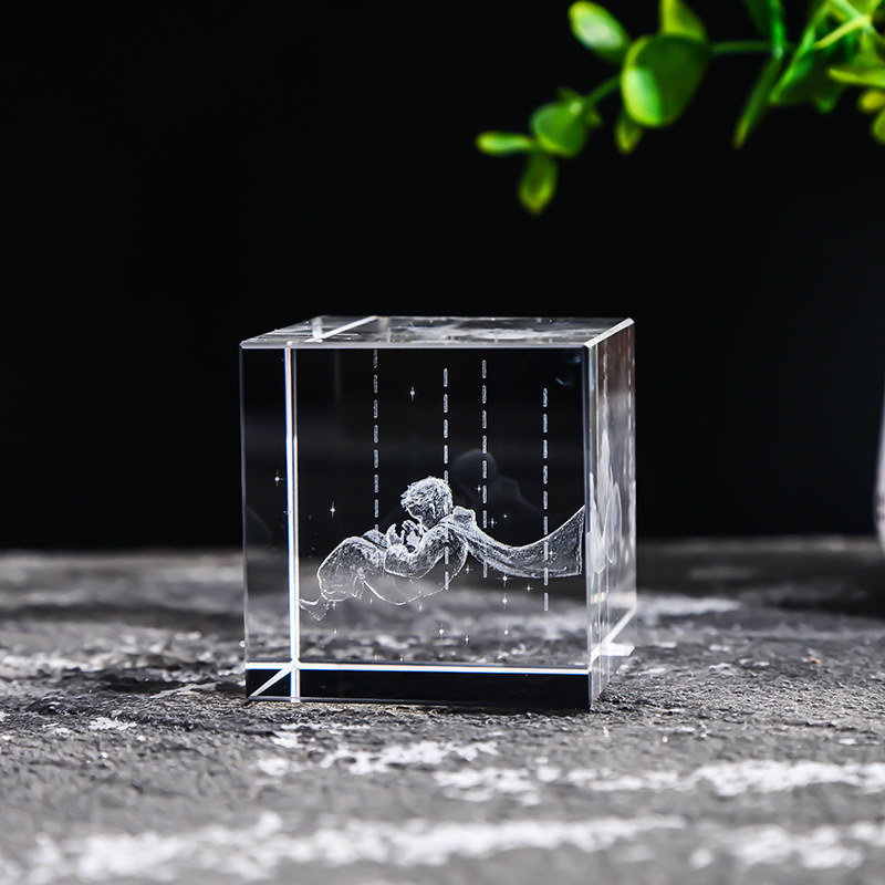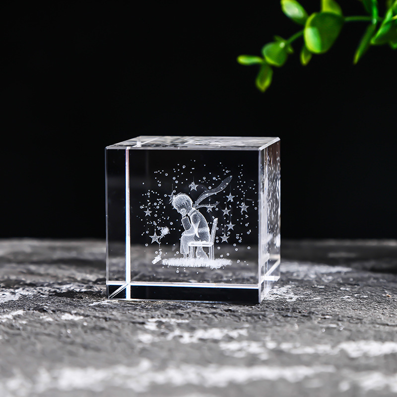 40-80水晶方体内雕雨点月球太阳系云朵立方心形桌面创意礼品摆件