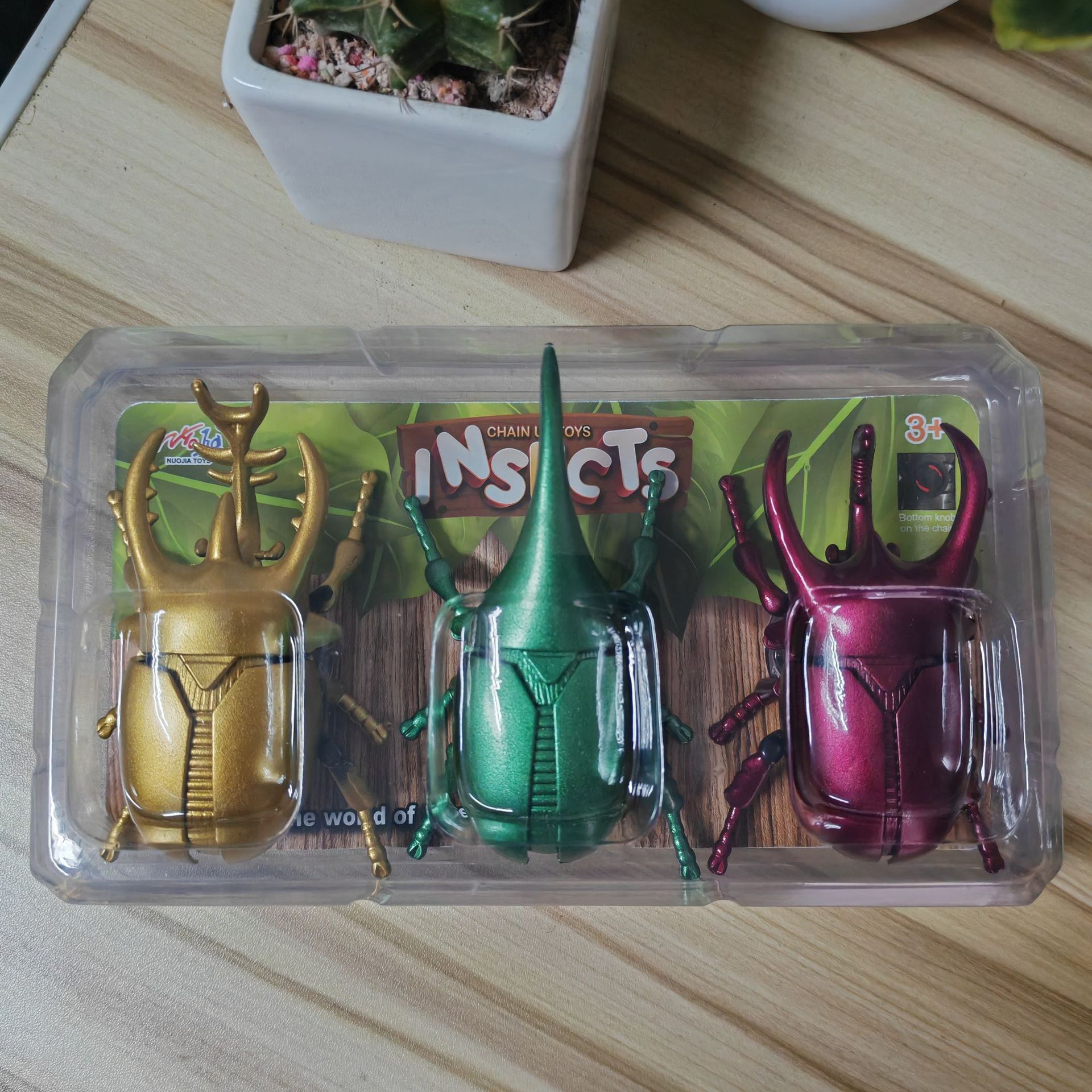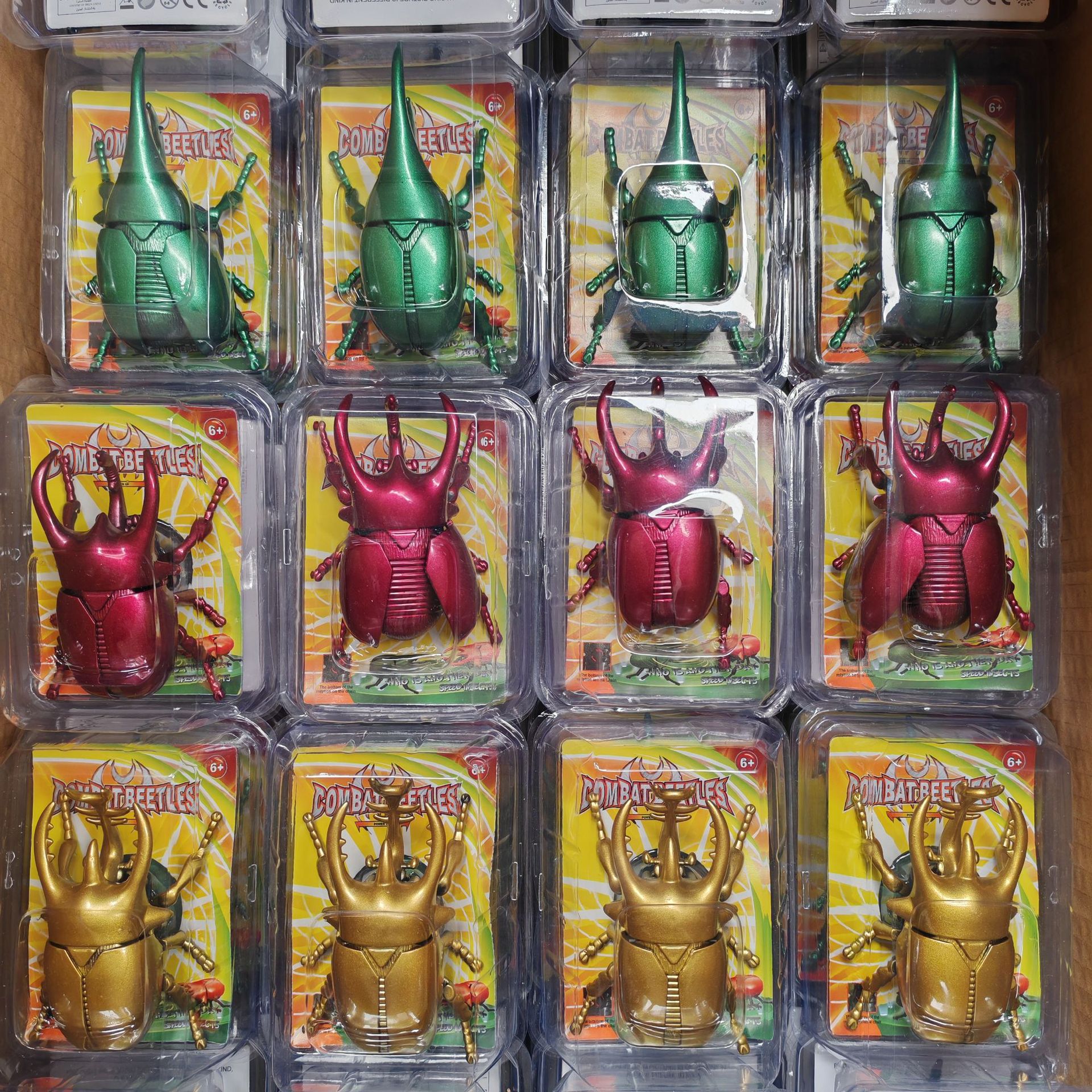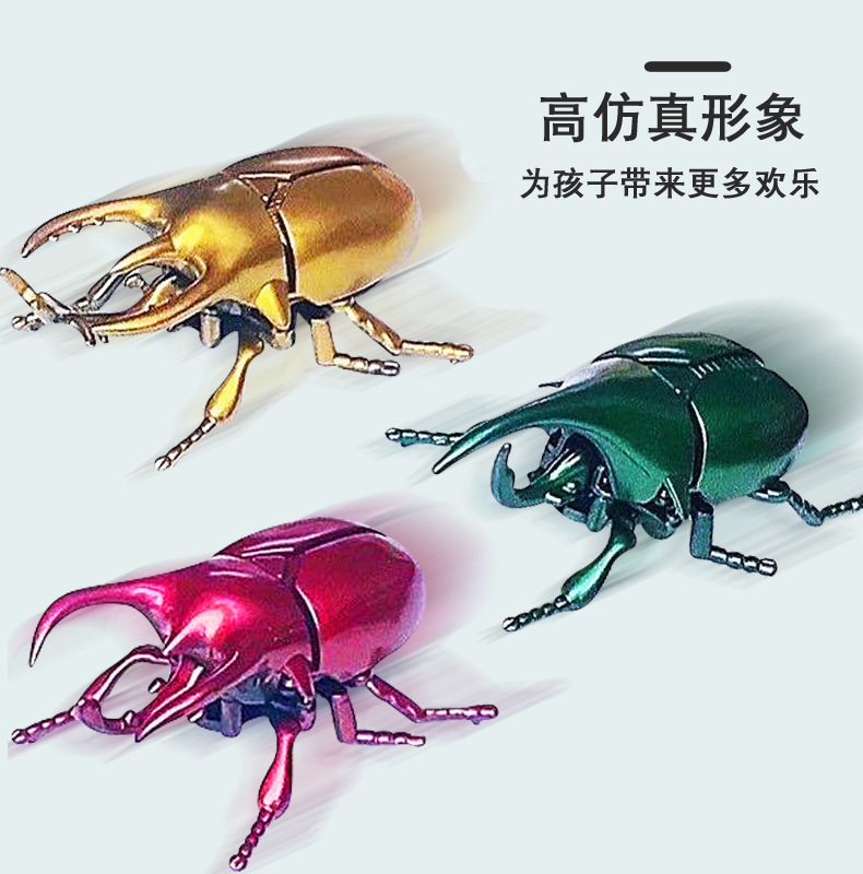 跨境创意发条上链仿真格斗甲虫独角仙昆虫模型儿童益智玩具批发