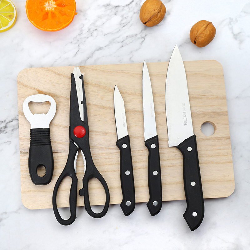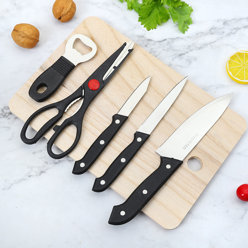 厨房用品626-6PC刀具菜板五金套装家用水果刀剪刀木菜板套刀六件