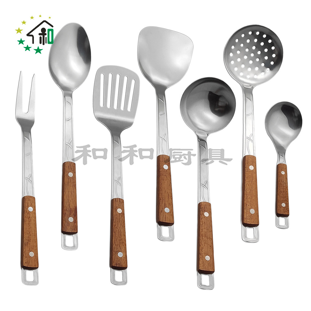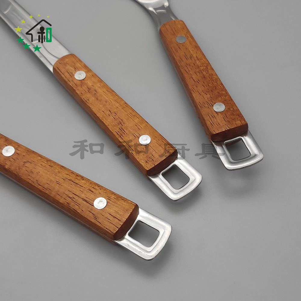 304不锈钢锅铲炒菜铲子家用汤勺防烫手柄漏勺木柄厨具勺子耐高温