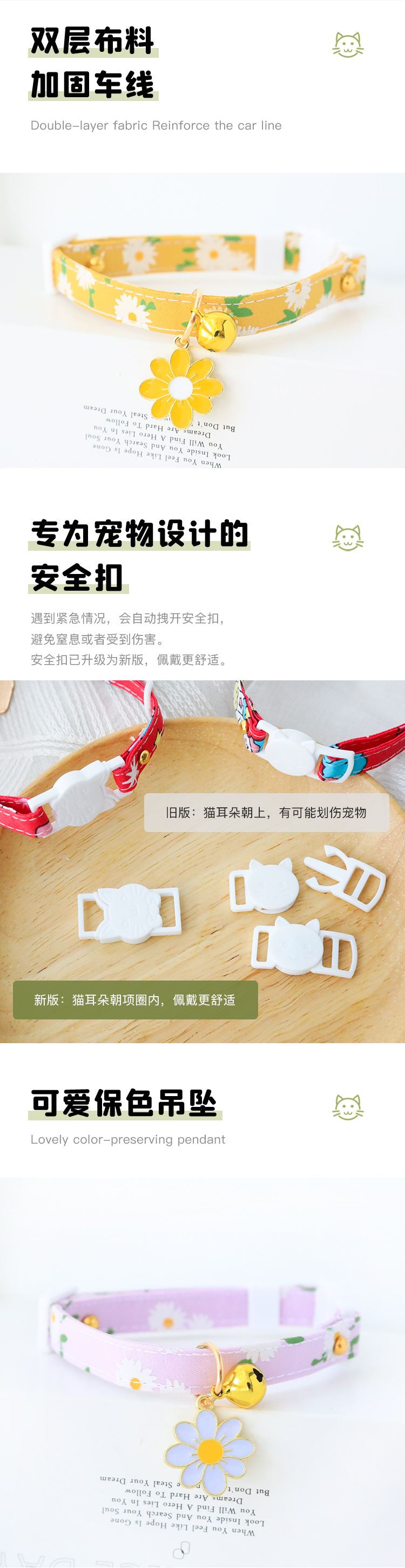 跨境亚马逊宠物项圈小猫咪狗铃铛扣项链可爱饰品花朵清新