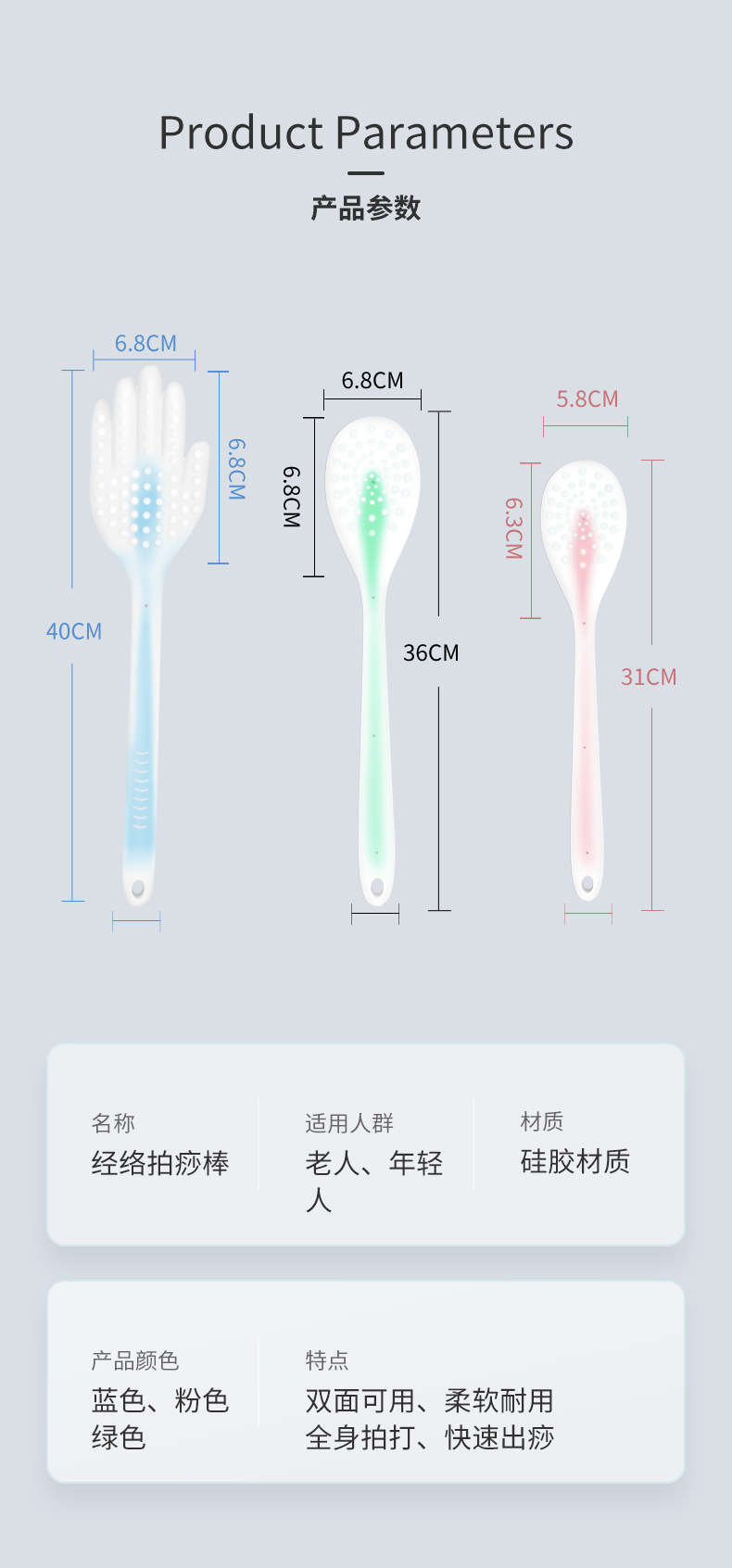 拍痧板硅胶经络拍拍棒肩颈敲打按摩健身锤捶背神器健康养生拍打板