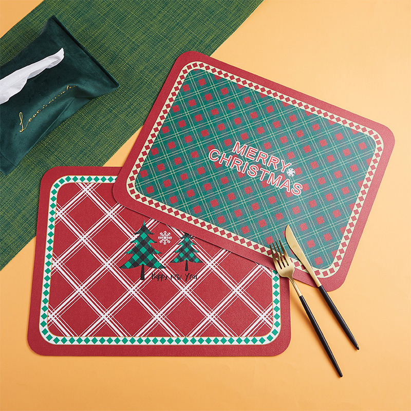 亚马逊圣诞节餐垫皮革美式节日西餐垫创意家居杯垫碗垫隔热餐桌垫