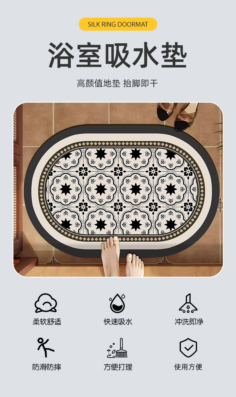 批发小香风硅藻泥地垫软垫加厚吸水地垫浴室脚垫防滑吸水门垫子