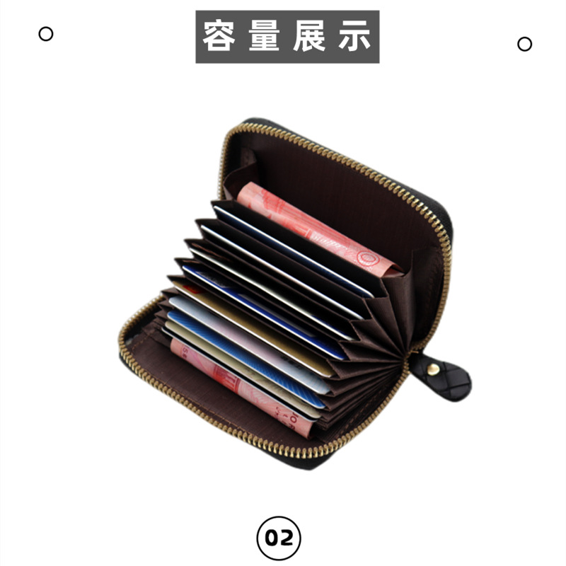新款编织纹风琴卡包女简约防磁大容量多卡位卡套男多功能一体钱包