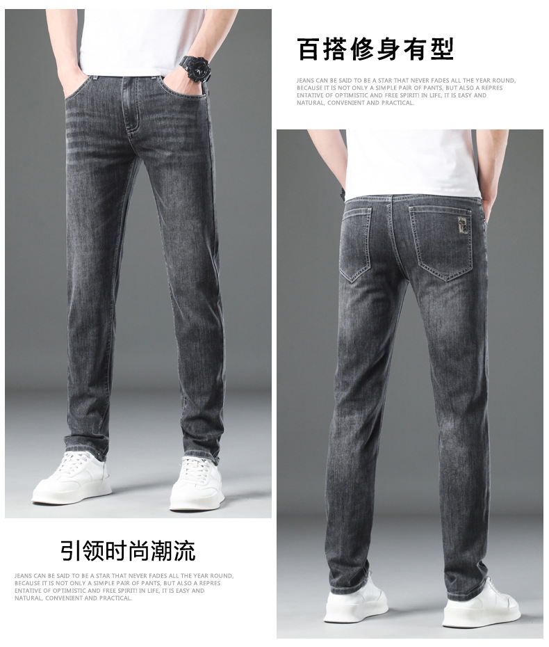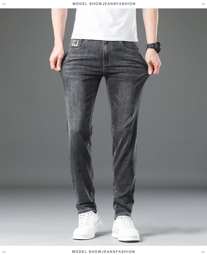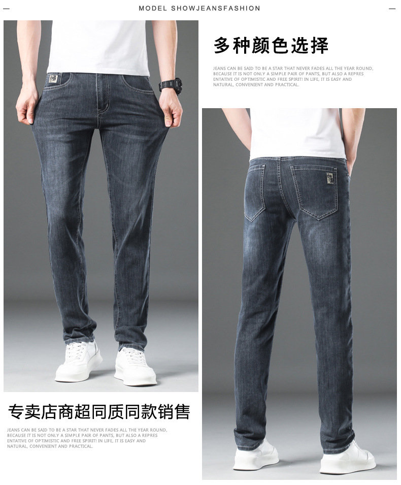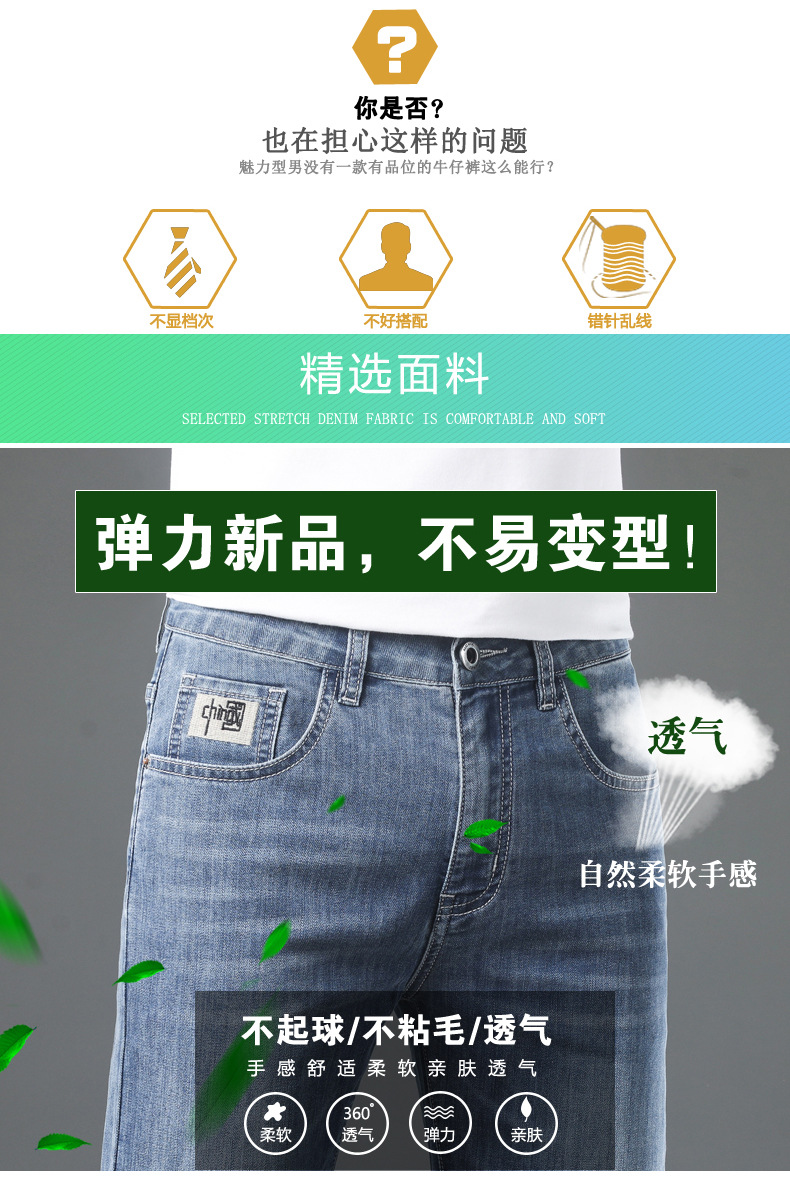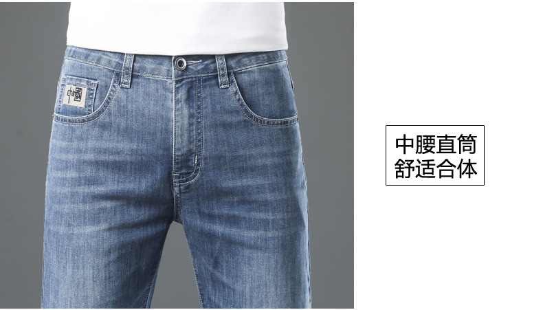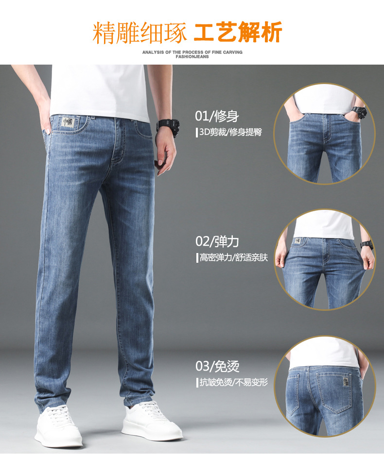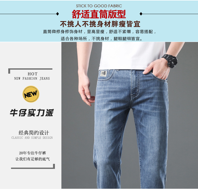 国潮刺绣爆款夏季牛仔裤男修身小直筒长裤弹力柔软舒适薄款裤子