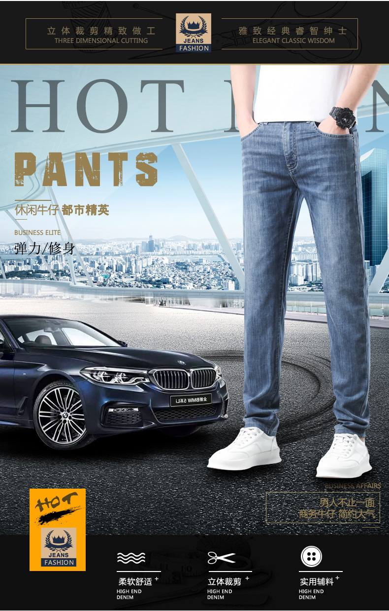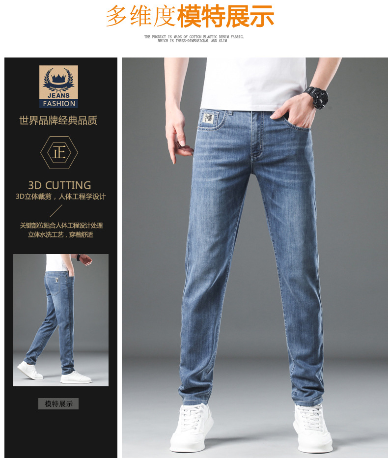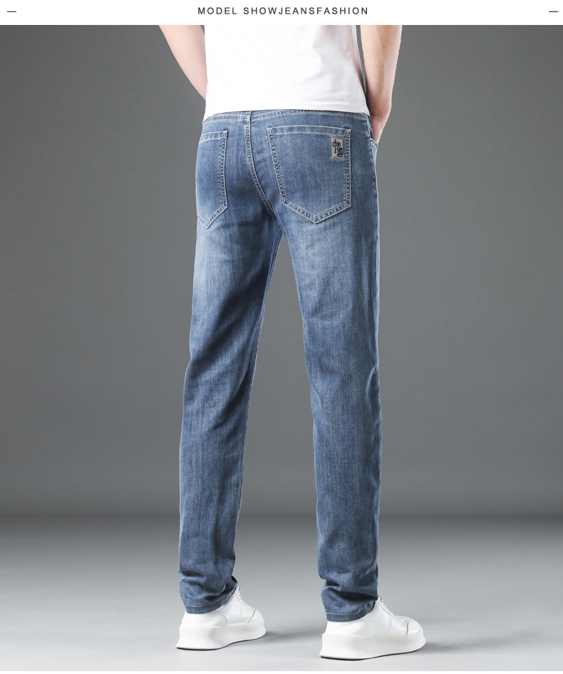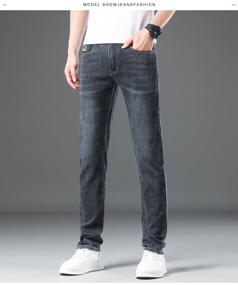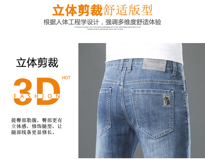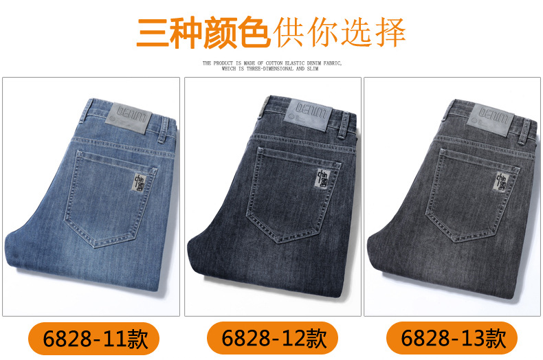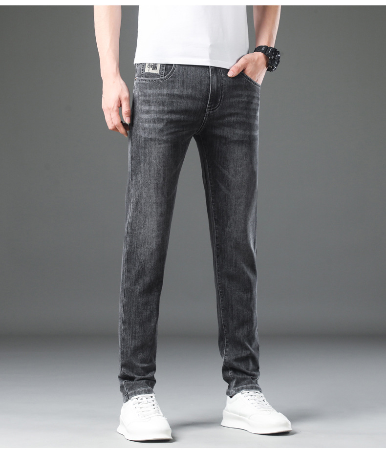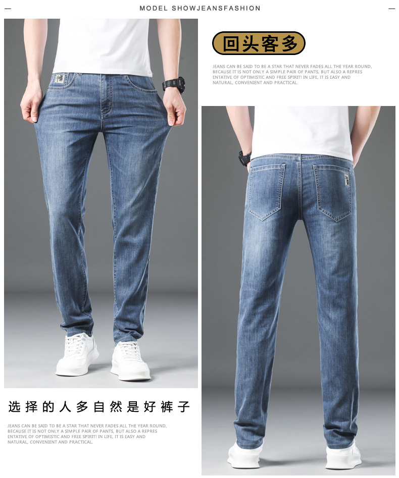国潮刺绣爆款夏季牛仔裤男修身小直筒长裤弹力柔软舒适薄款裤子