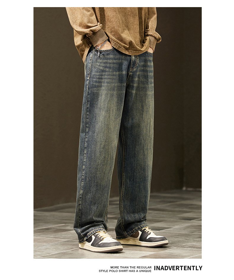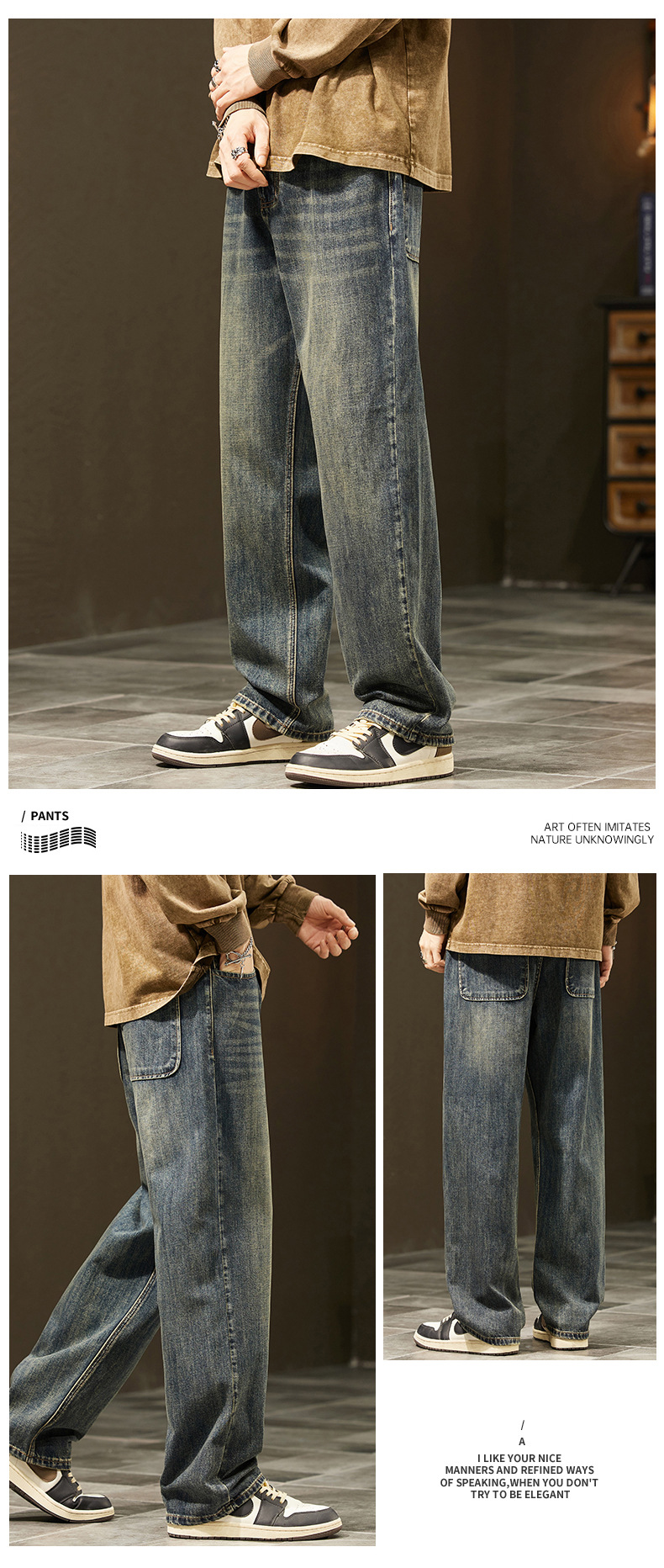 潮流休闲百搭阔腿牛仔裤男新款磨白做旧复古直筒宽松大码男士长裤