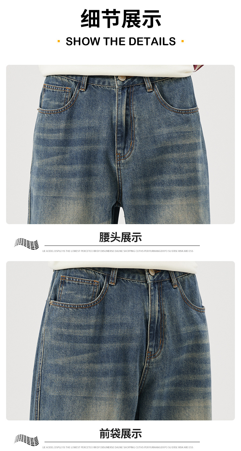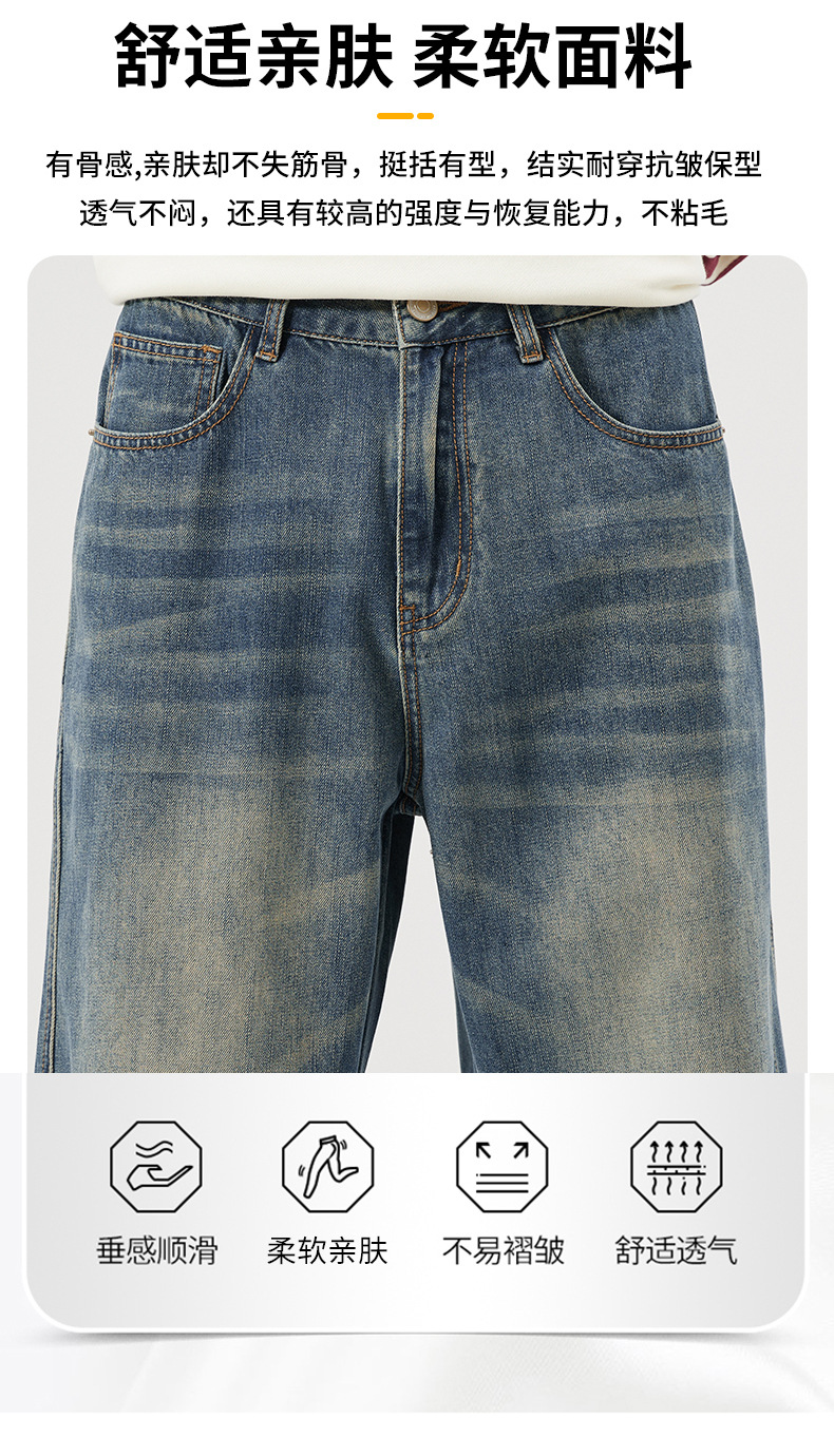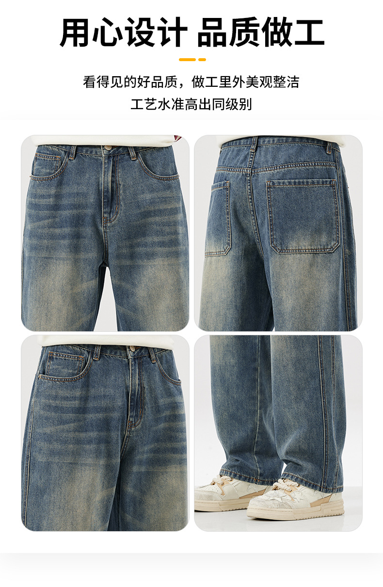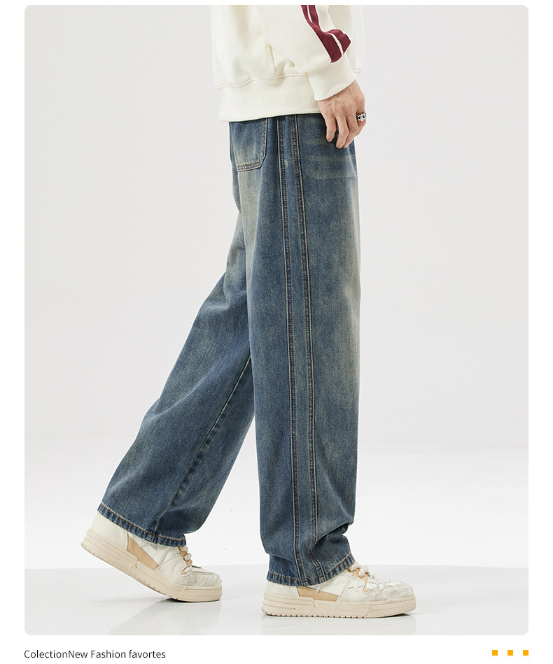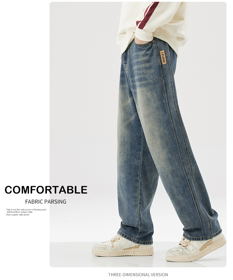 复古水洗男生阔腿牛仔裤宽松直筒2023秋季美式潮牌男士休闲长裤子