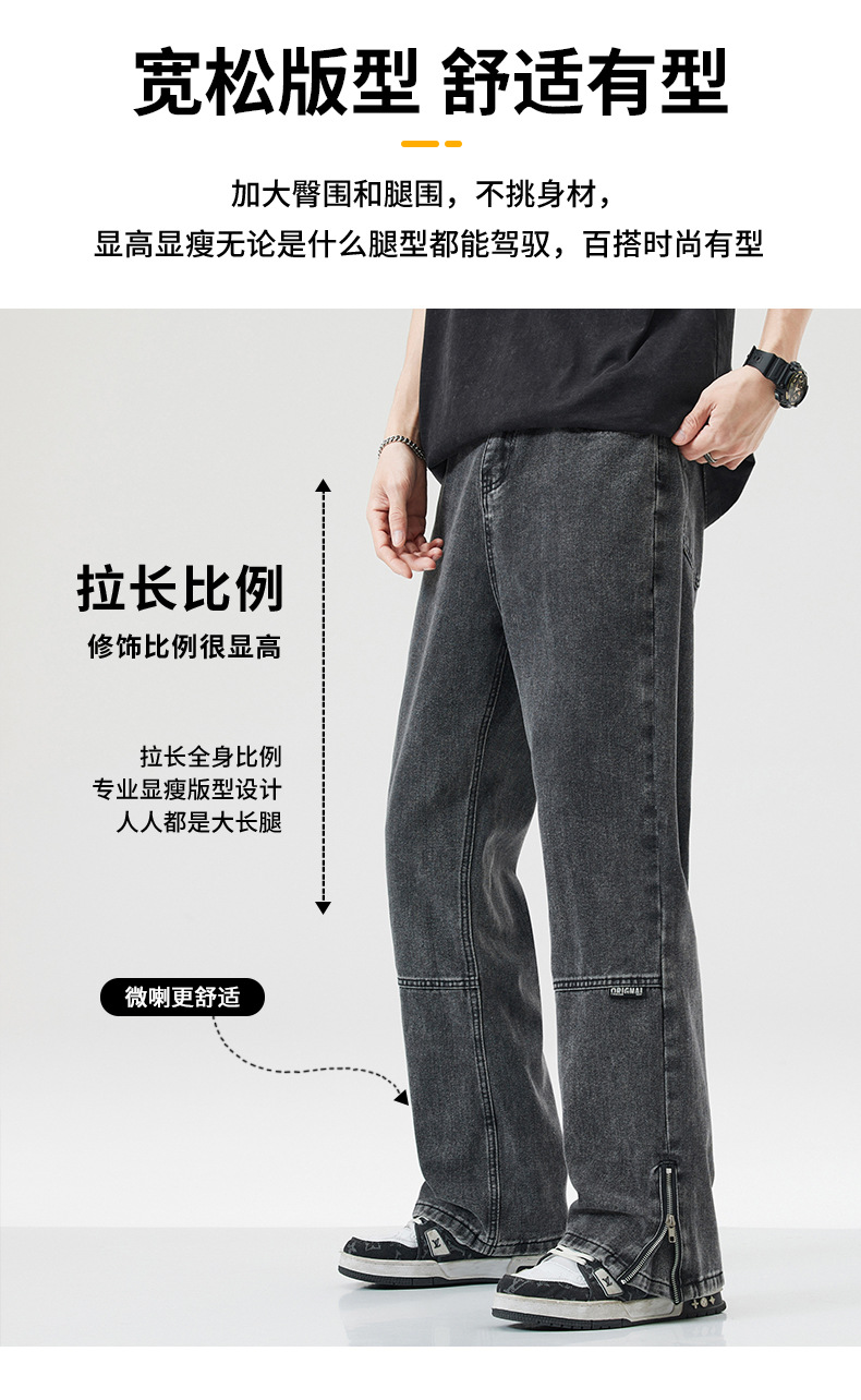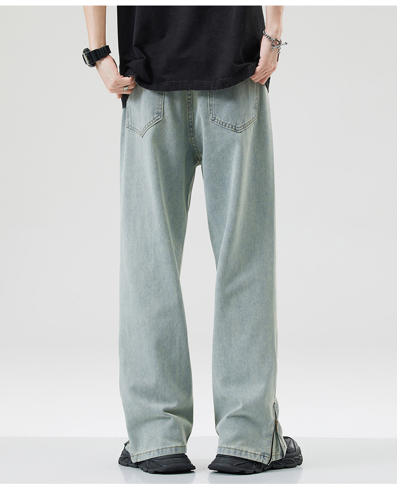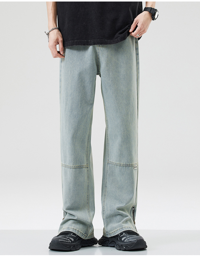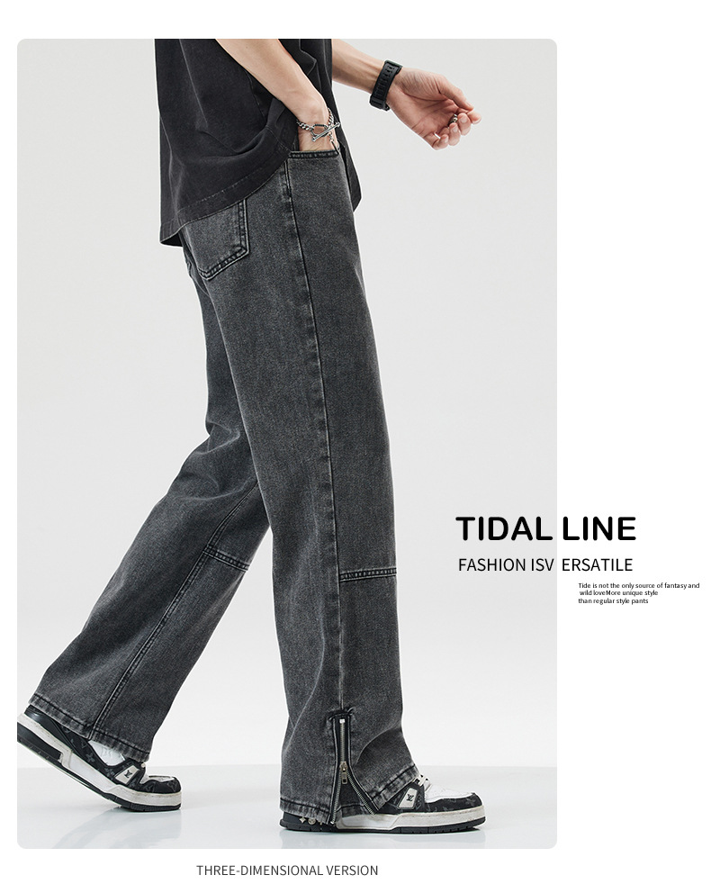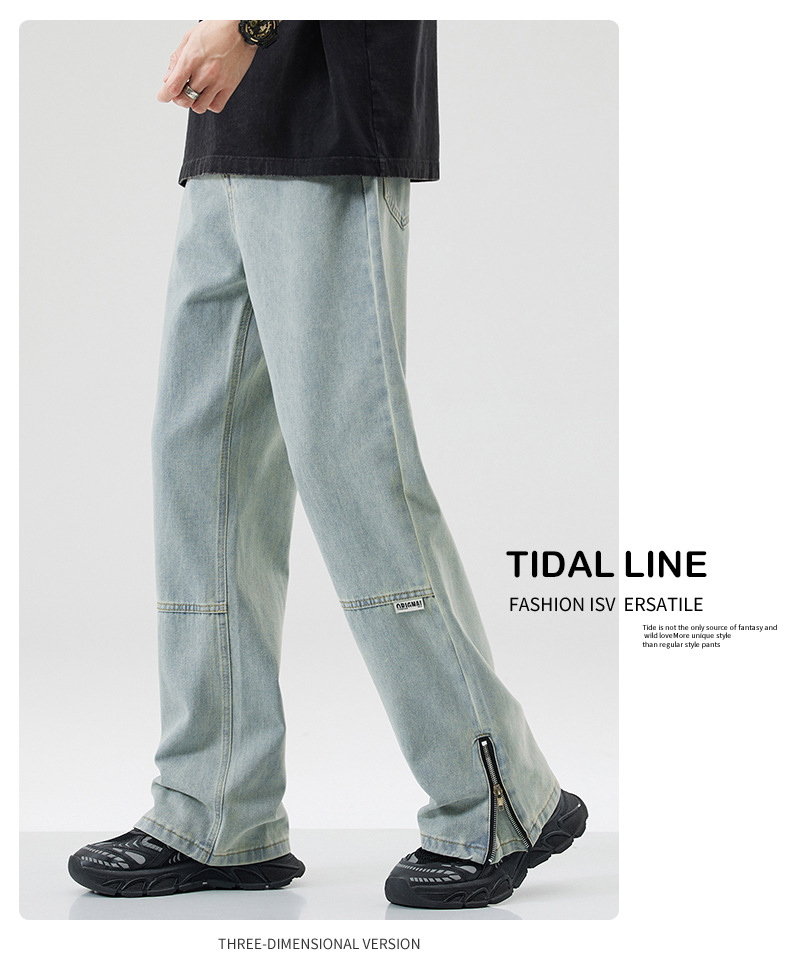 牛仔裤男夏季高街vibe潮牌复古做旧水洗拉链修身小脚直筒休闲裤子