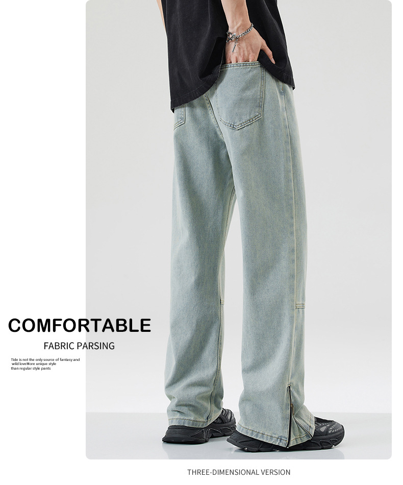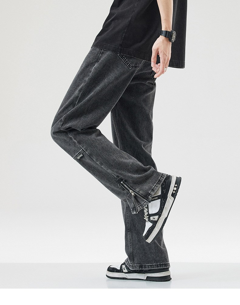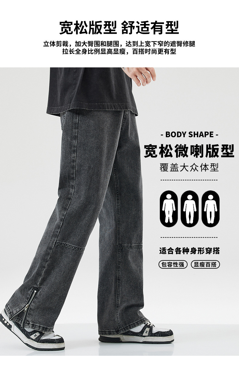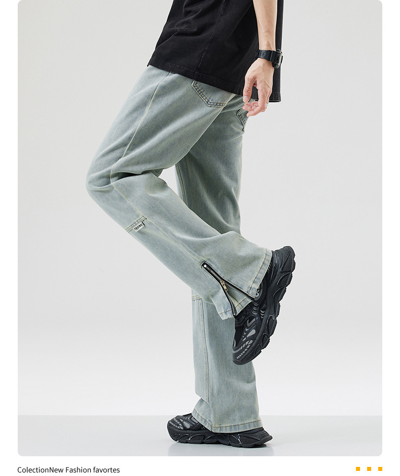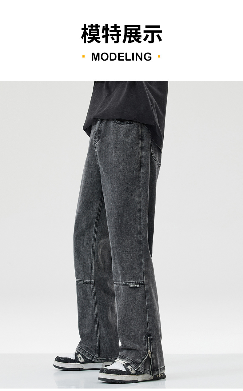牛仔裤男夏季高街vibe潮牌复古做旧水洗拉链修身小脚直筒休闲裤子