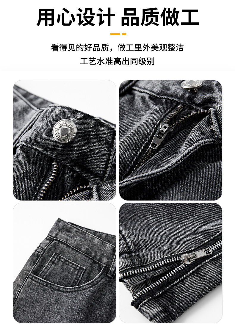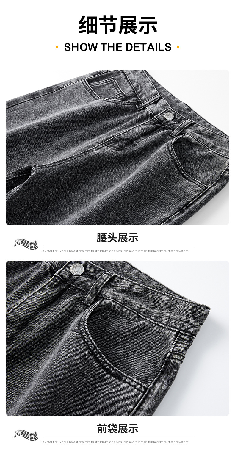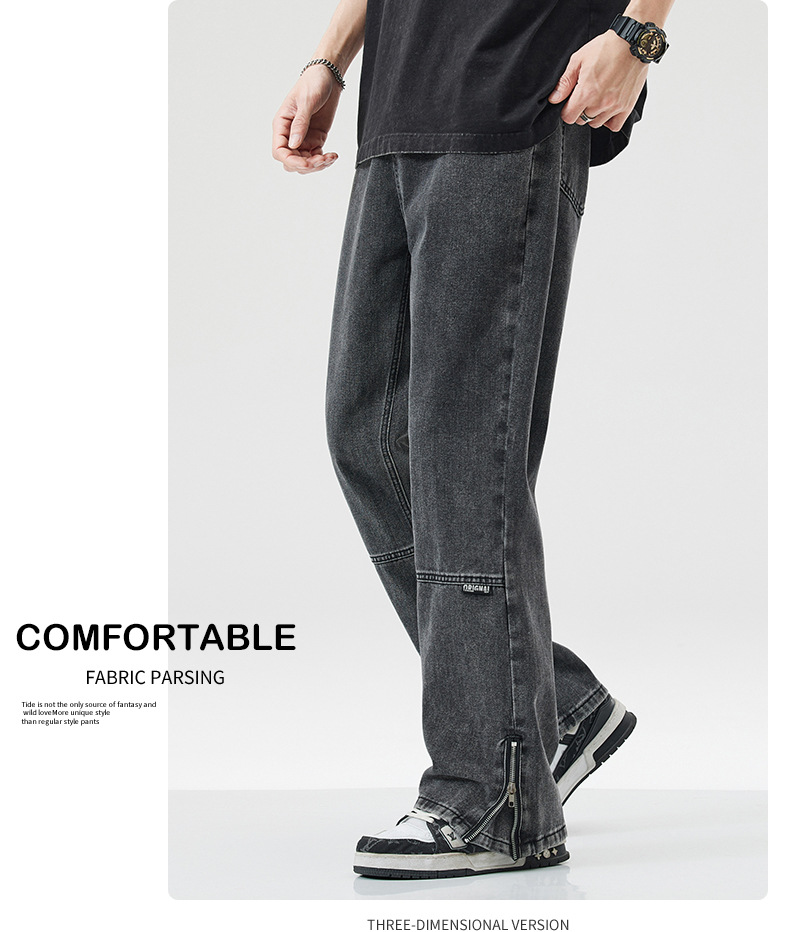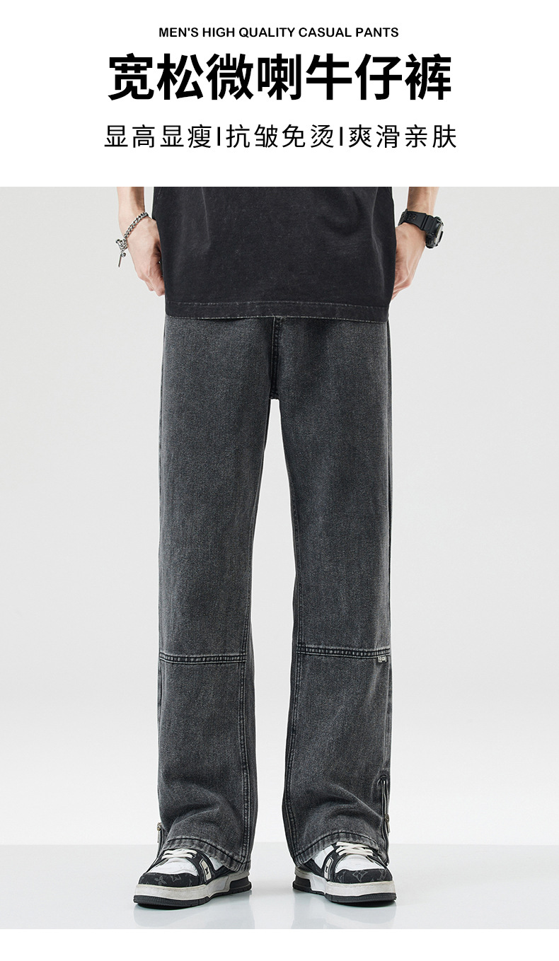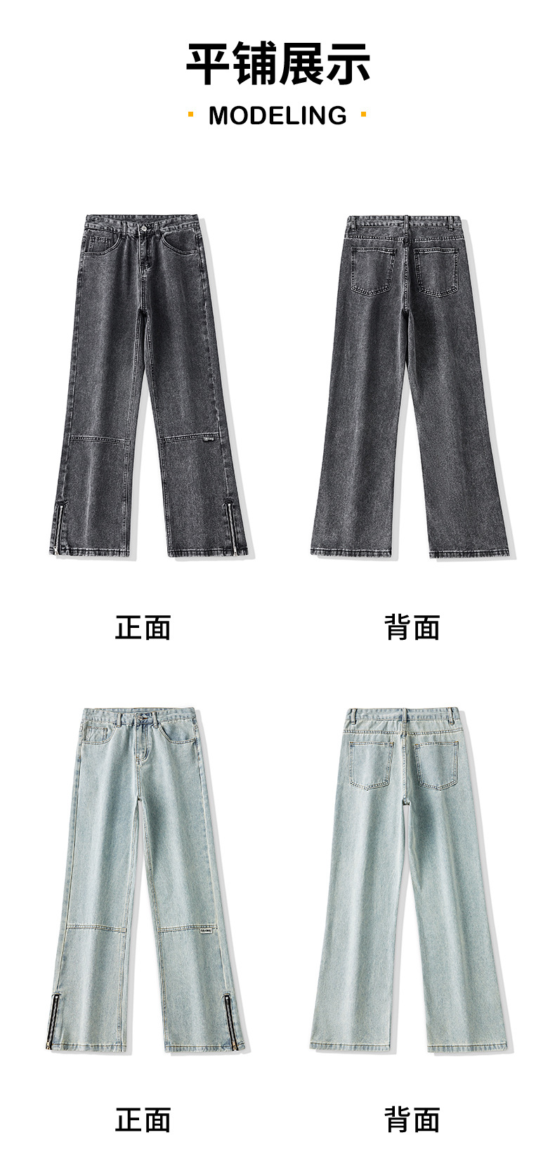 牛仔裤男夏季高街vibe潮牌复古做旧水洗拉链修身小脚直筒休闲裤子