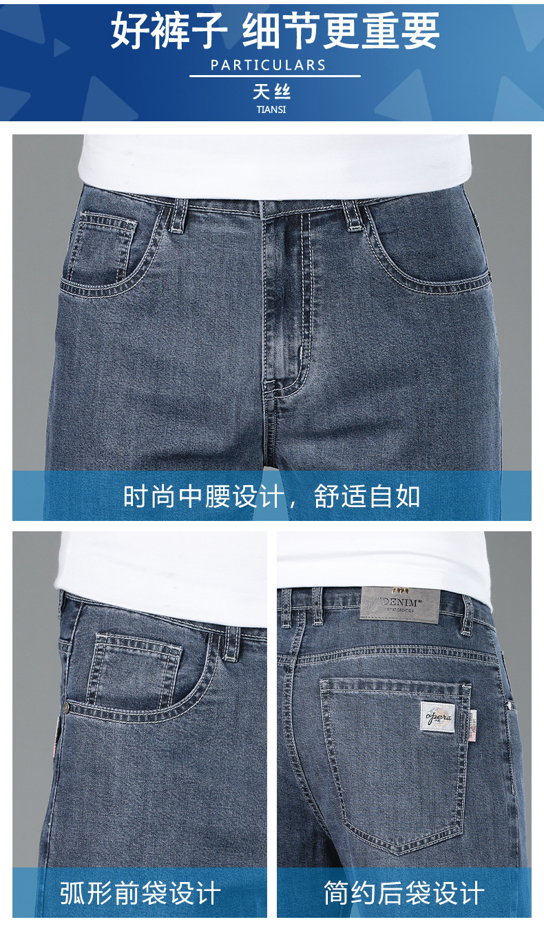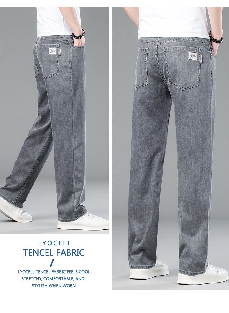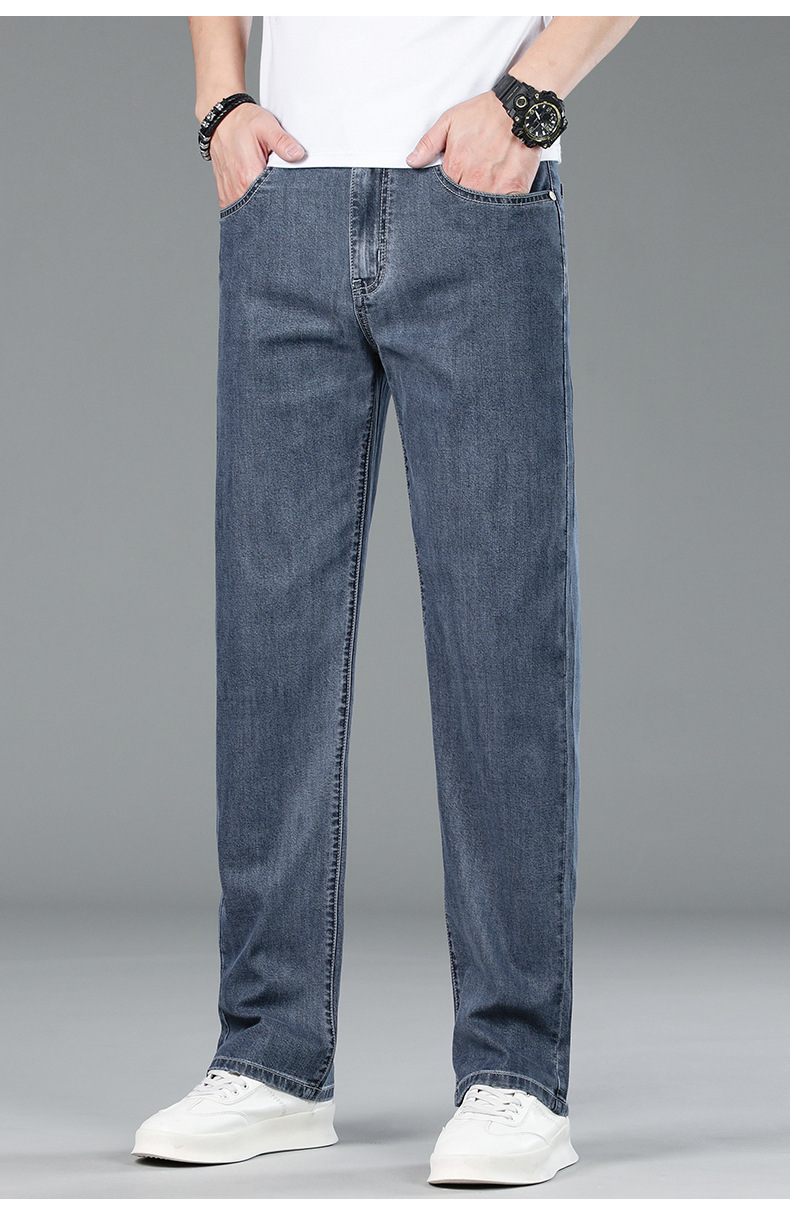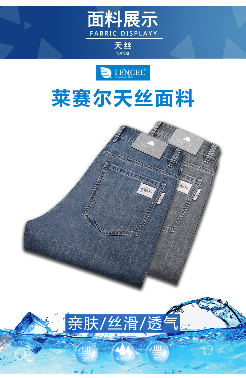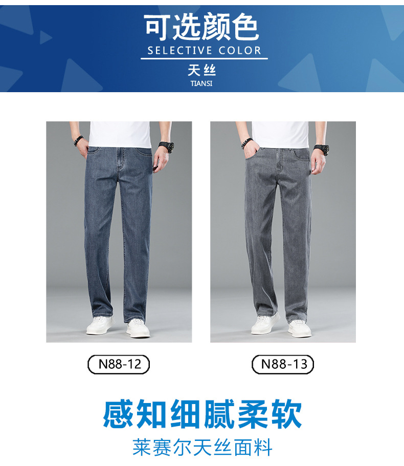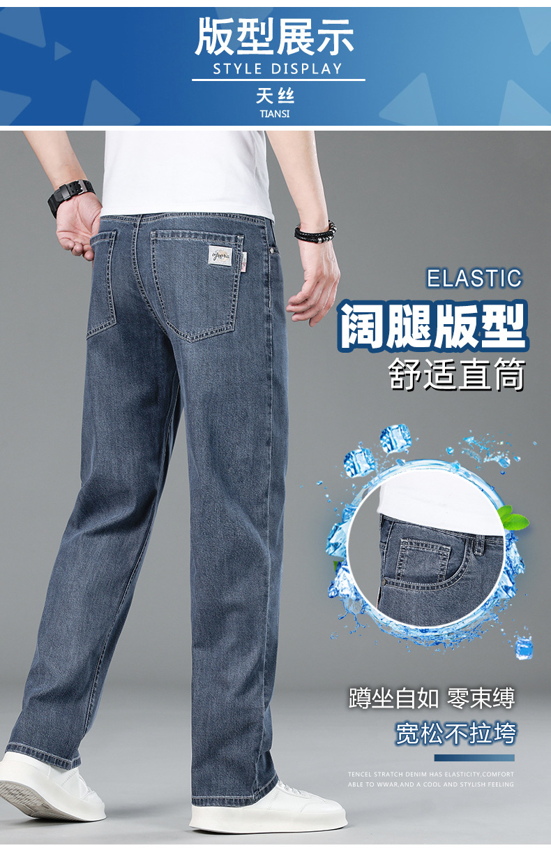 高端天丝牛仔裤男直筒宽松大码中年男士休闲冰丝夏天超薄款长裤子
