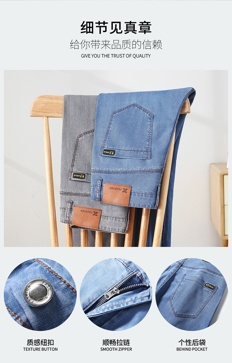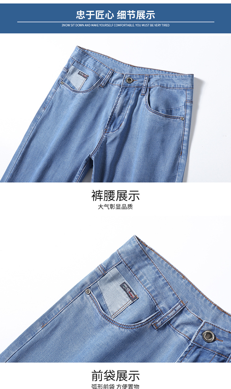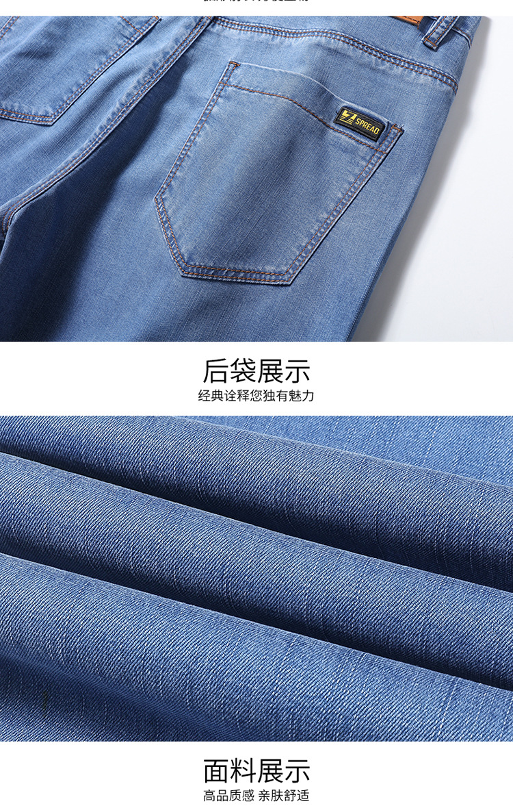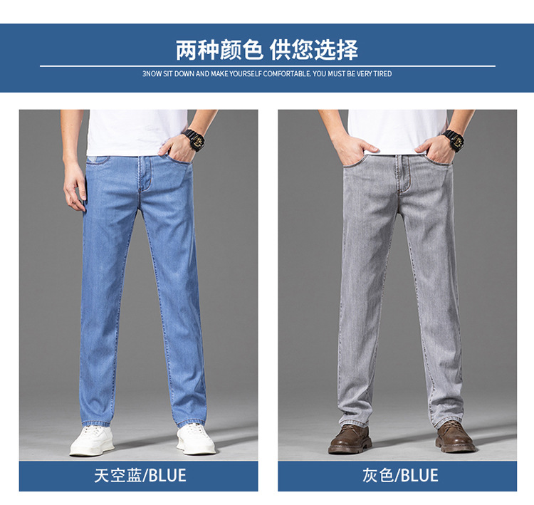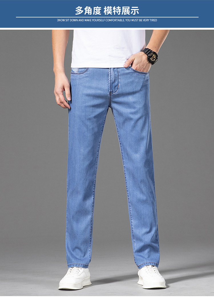 超薄天丝棉牛仔裤男休闲弹力男生长裤夏季柔软透气直筒裤男TS6879