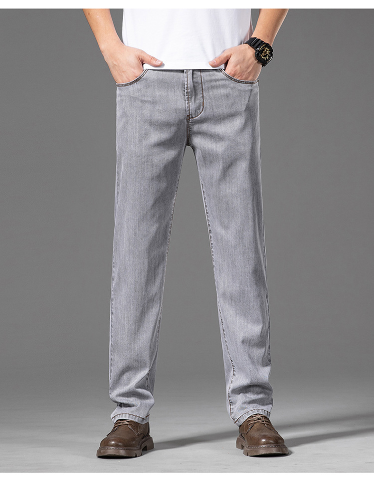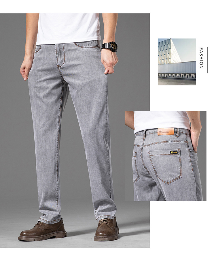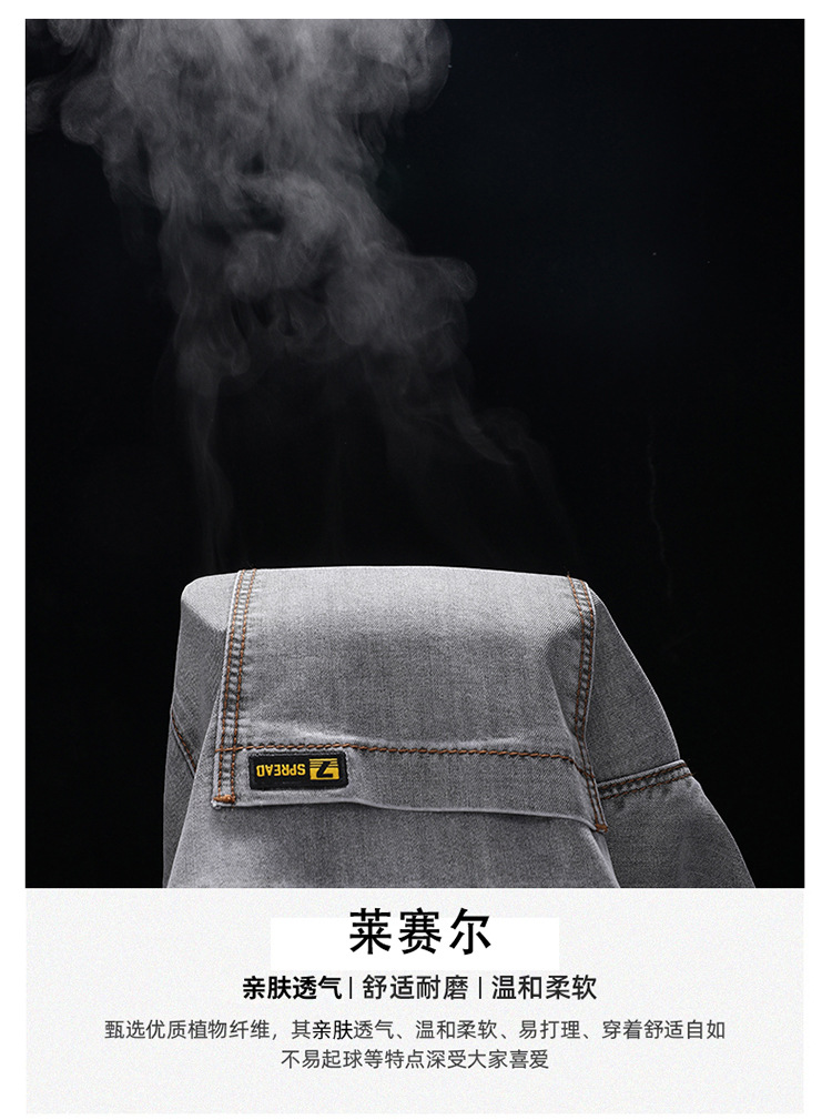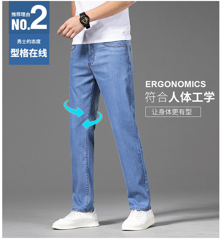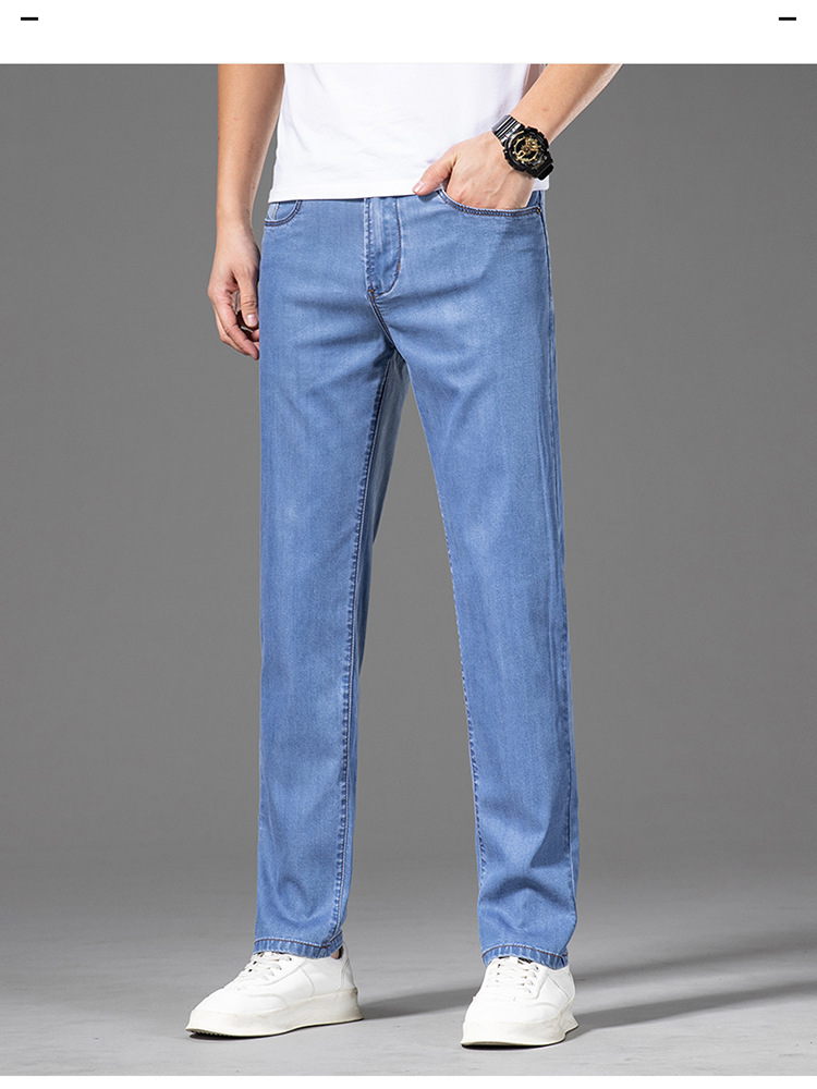 超薄天丝棉牛仔裤男休闲弹力男生长裤夏季柔软透气直筒裤男TS6879