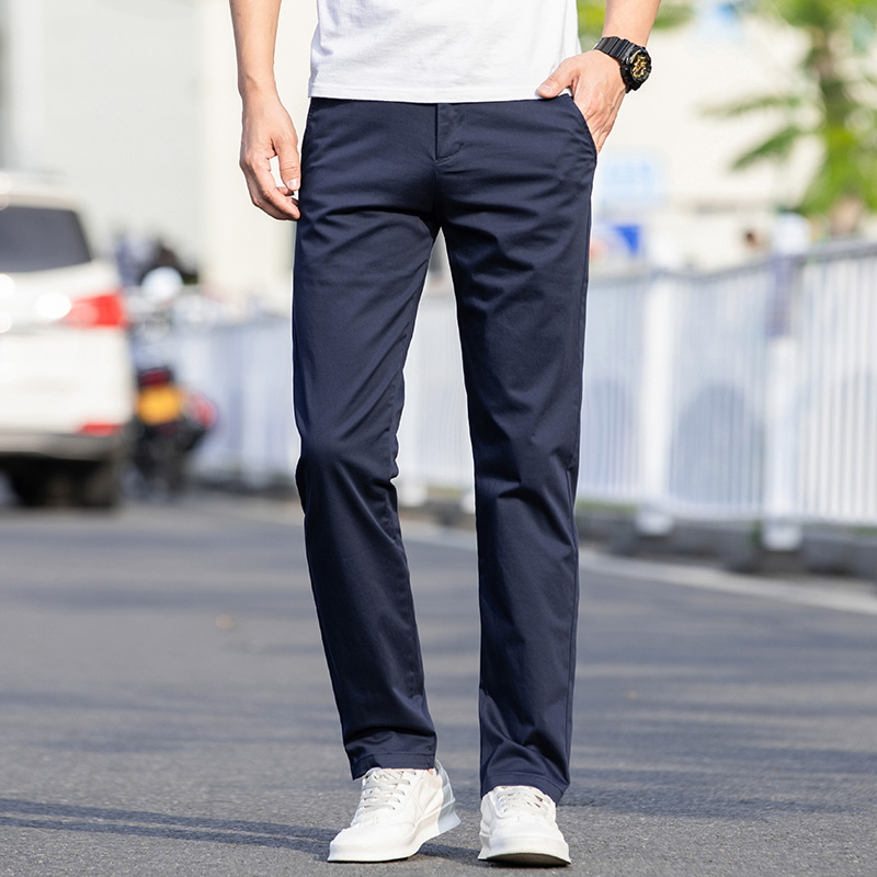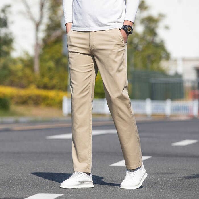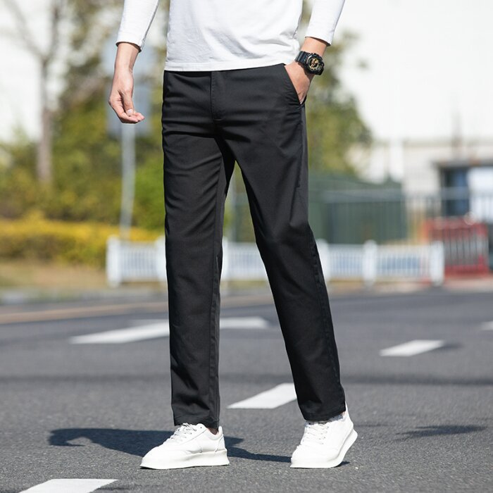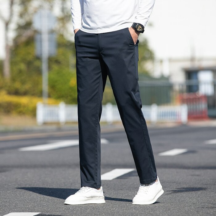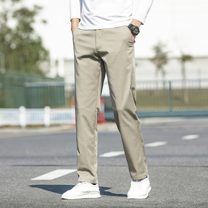 2024春夏季薄款米白色休闲裤男韩版宽松直筒弹力裤子男士商务长裤