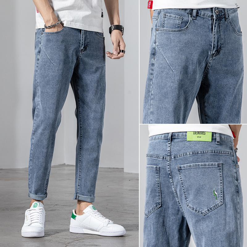 牛仔裤男士男装春秋宽松直筒潮牌夏季薄款休闲九分长裤子2024新款