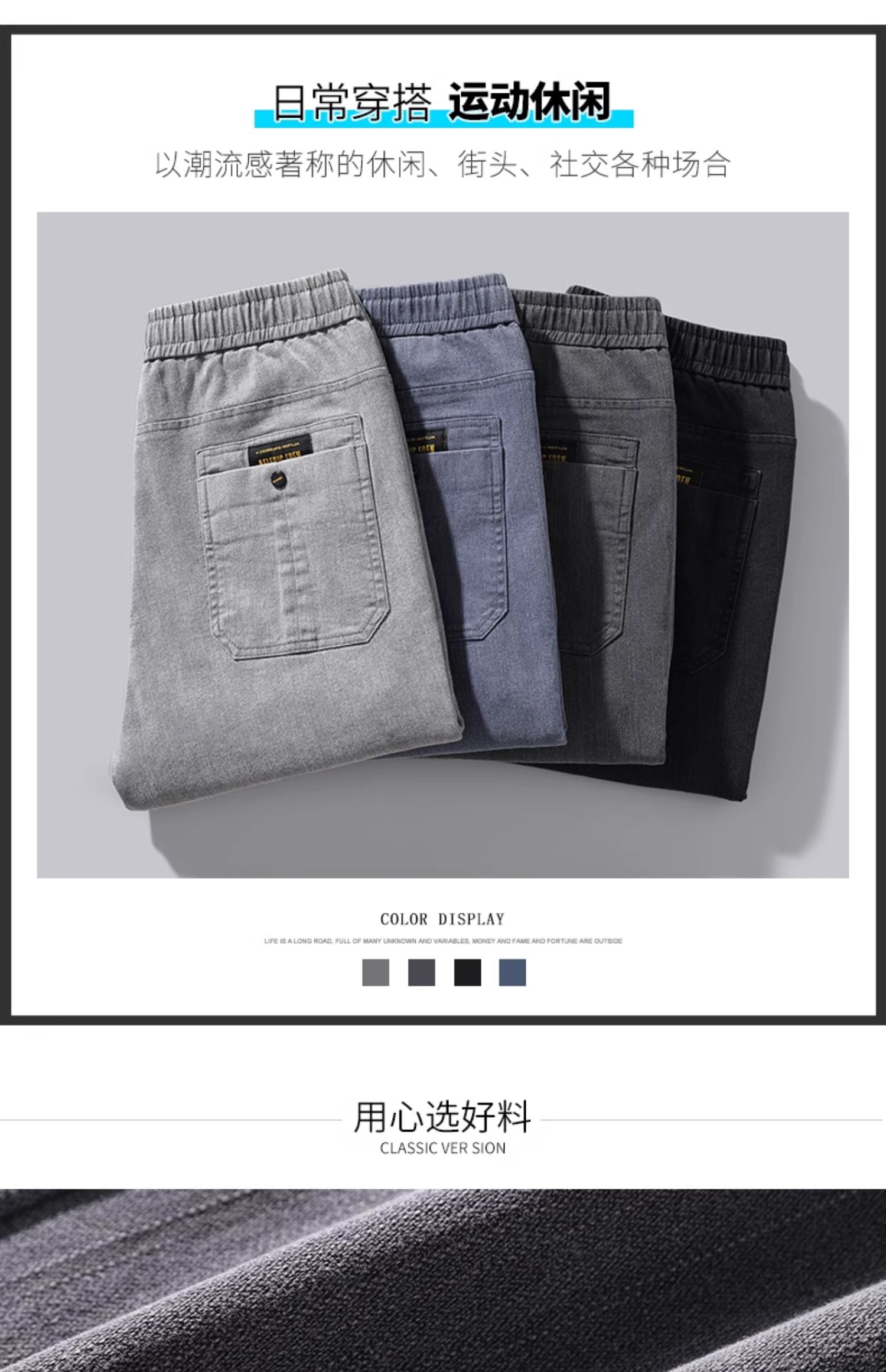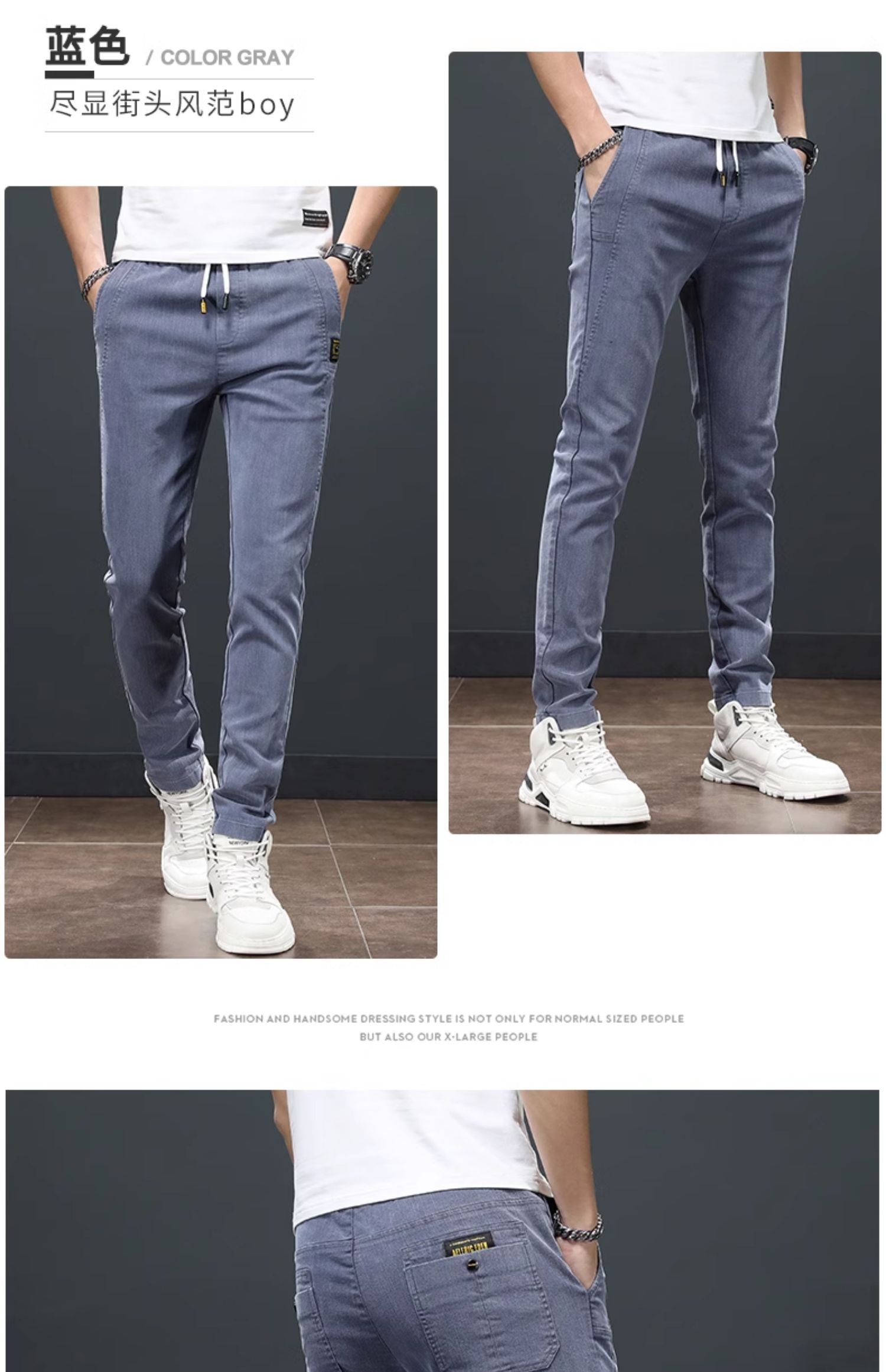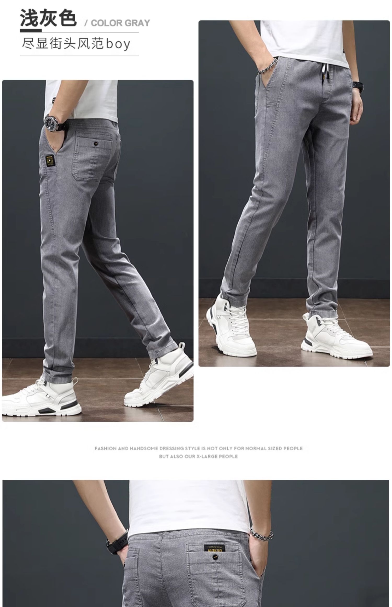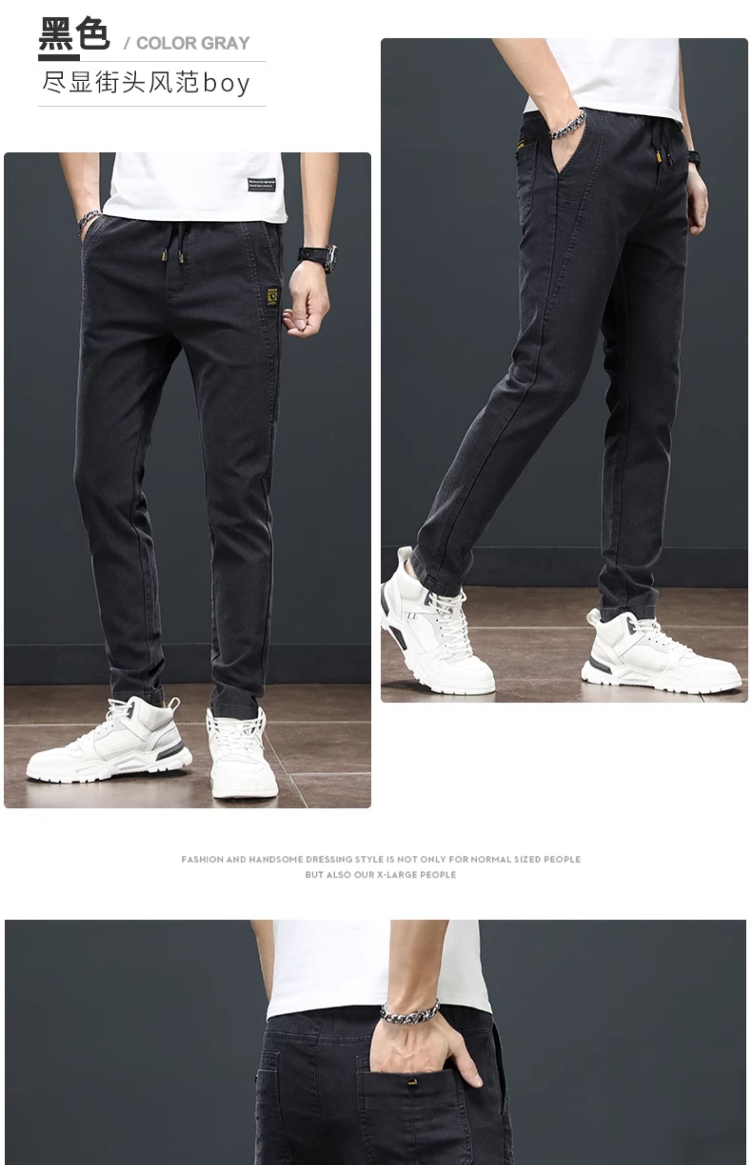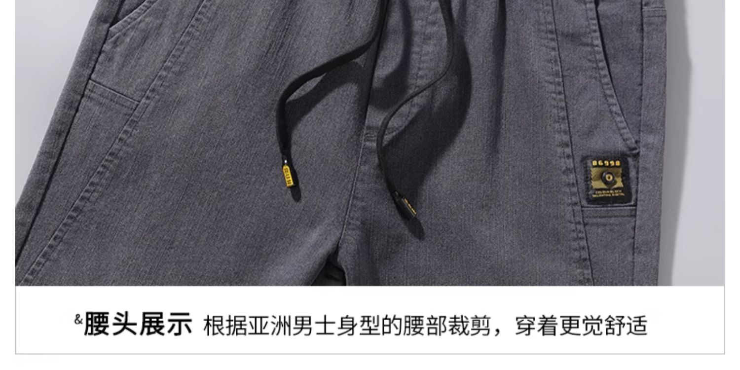 工装牛仔长裤男士2024春夏潮流松紧腰系带休闲裤夏季薄款男款