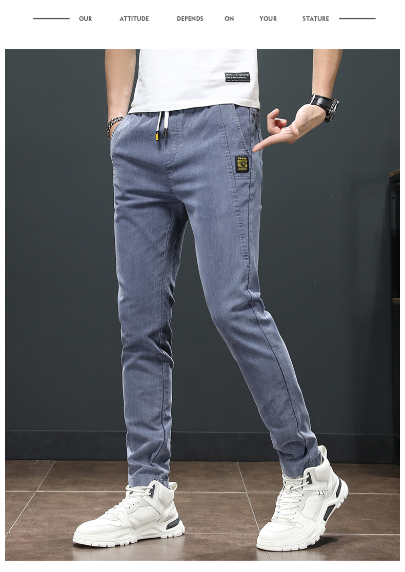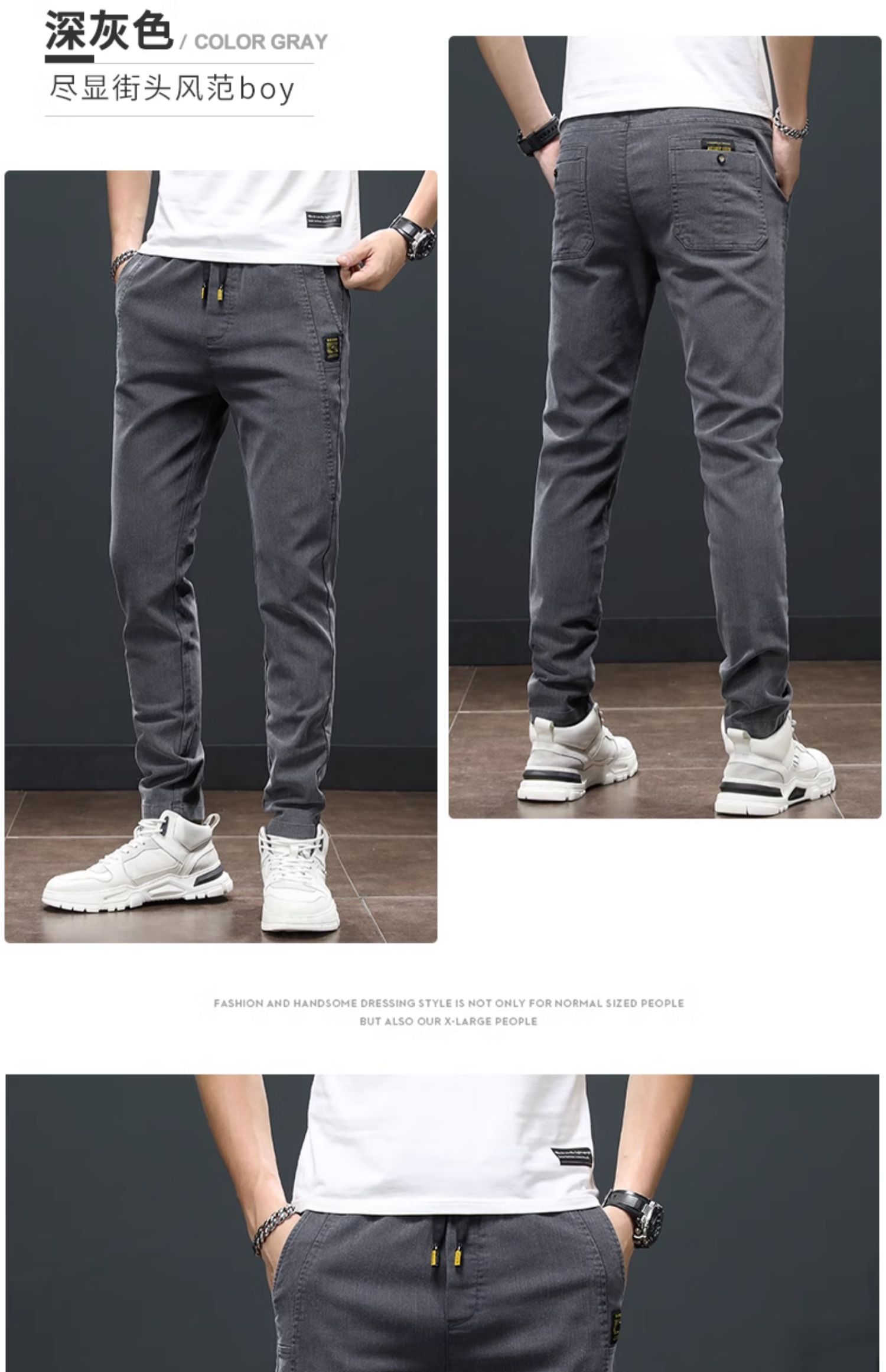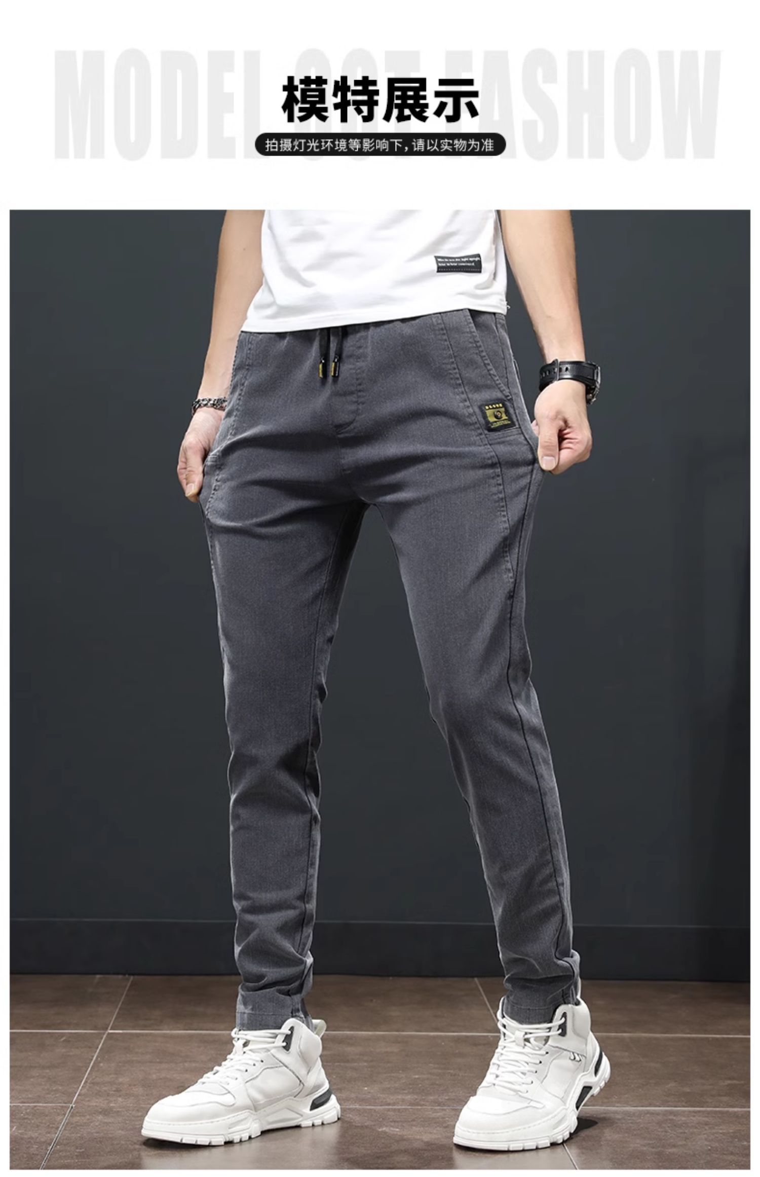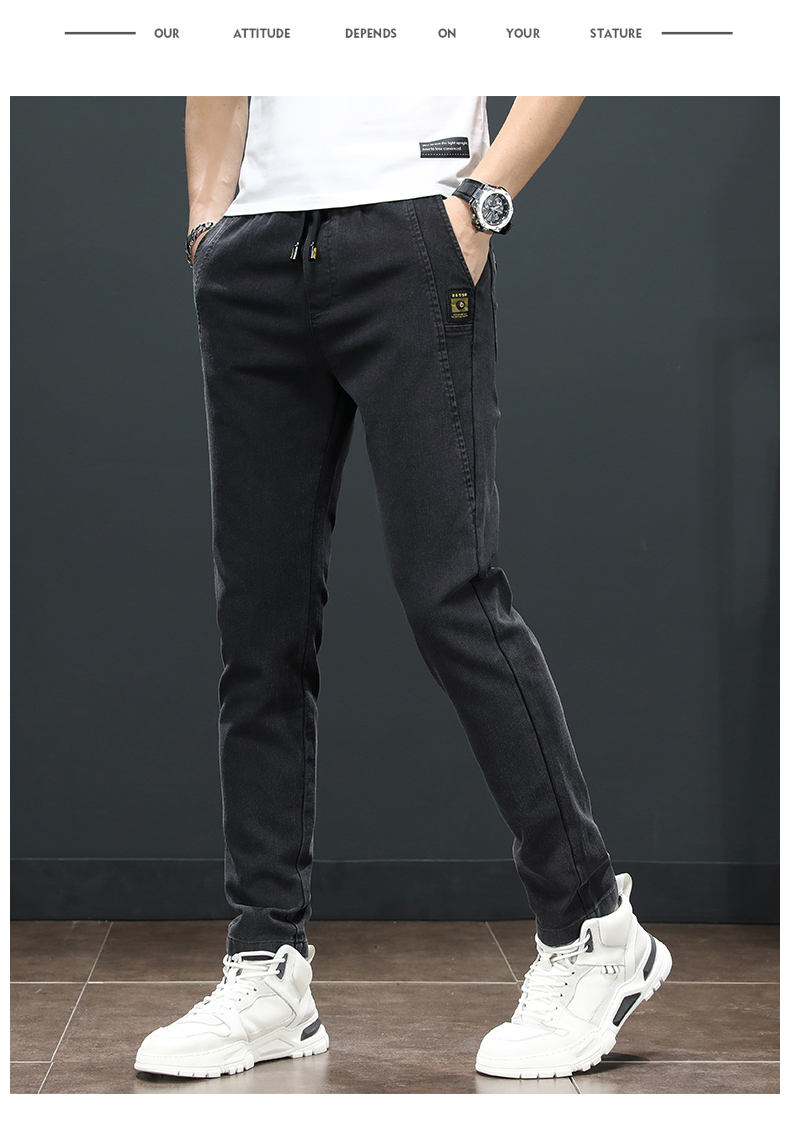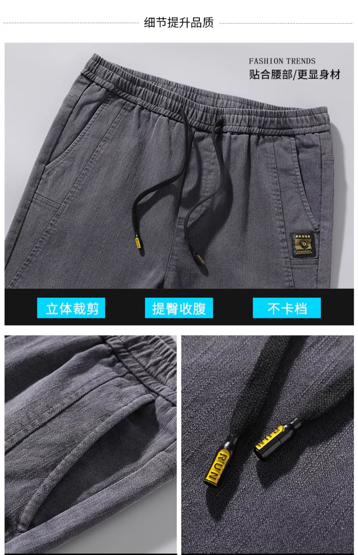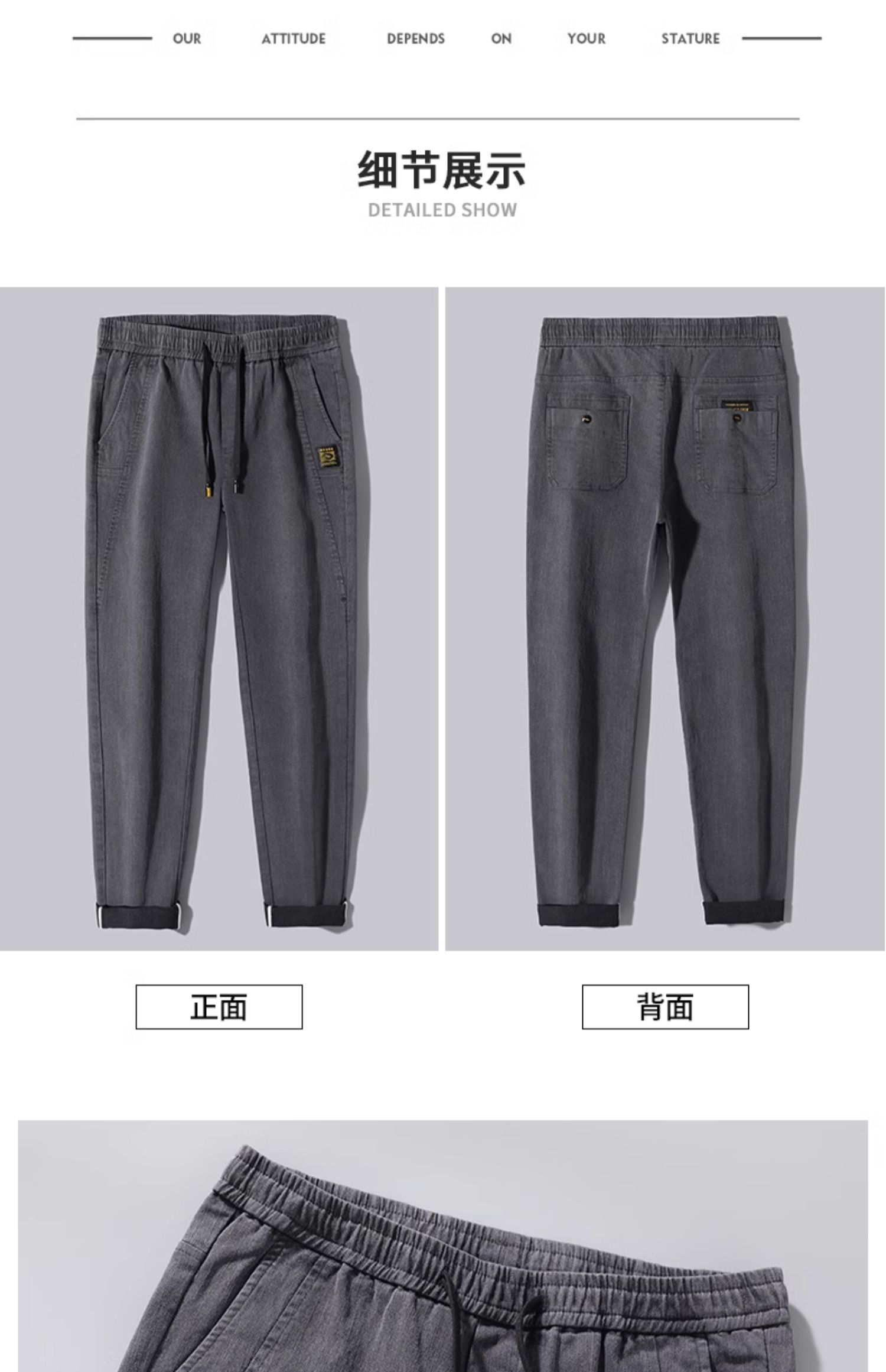 工装牛仔长裤男士2024春夏潮流松紧腰系带休闲裤夏季薄款男款