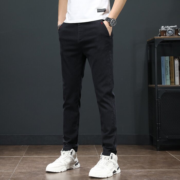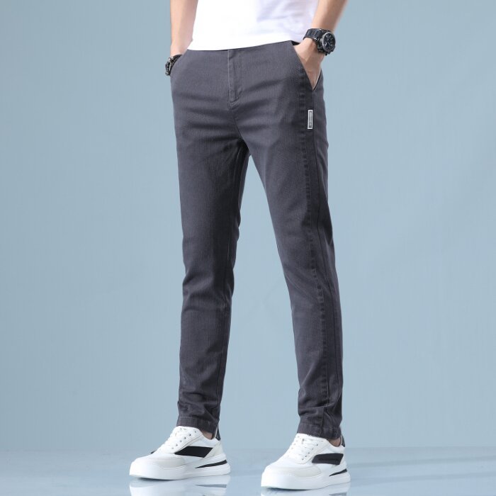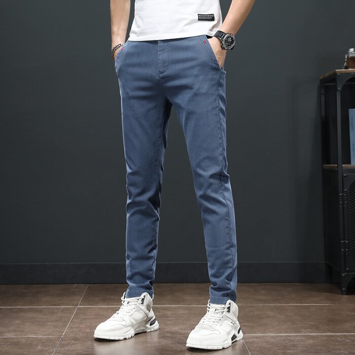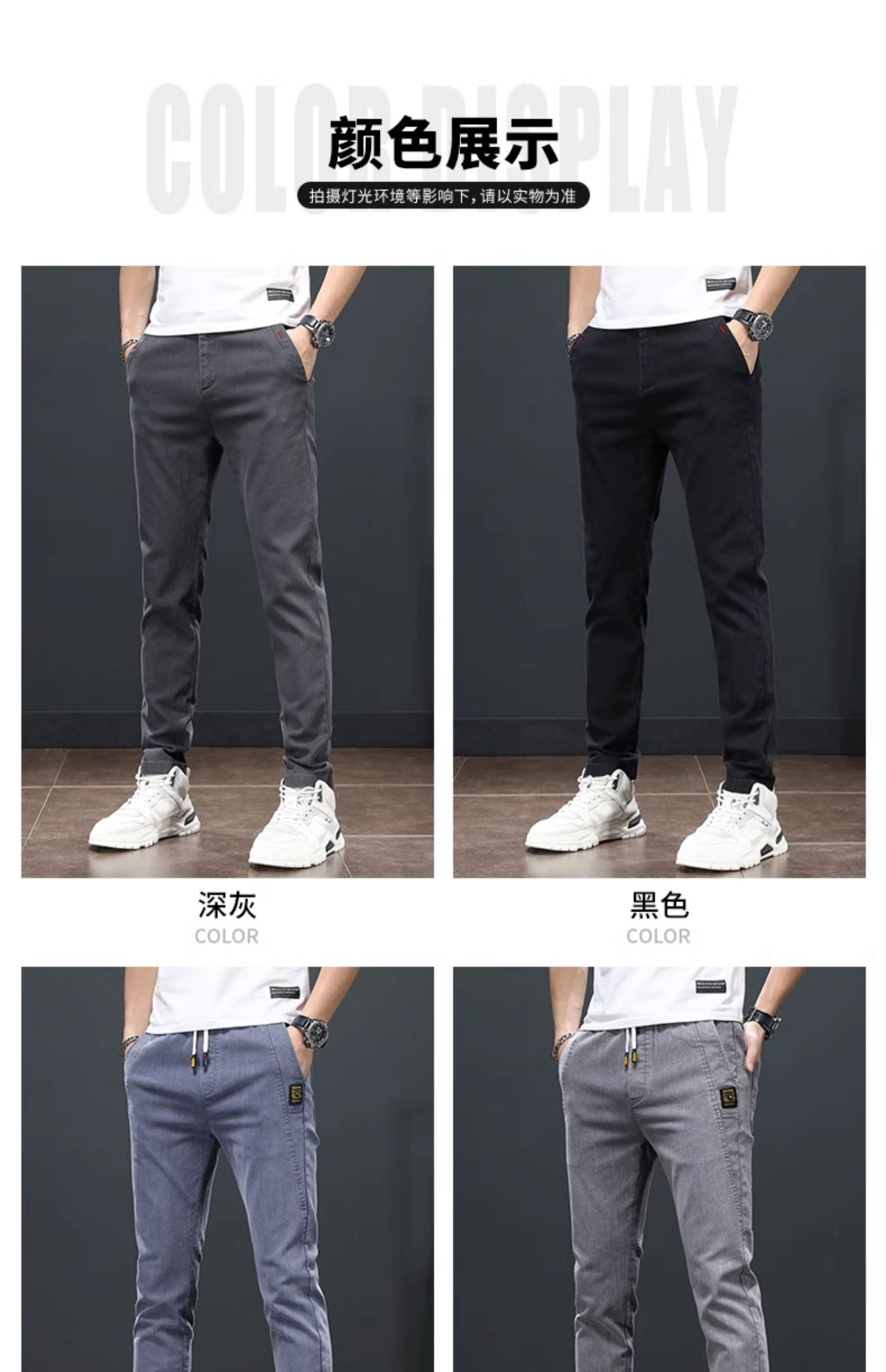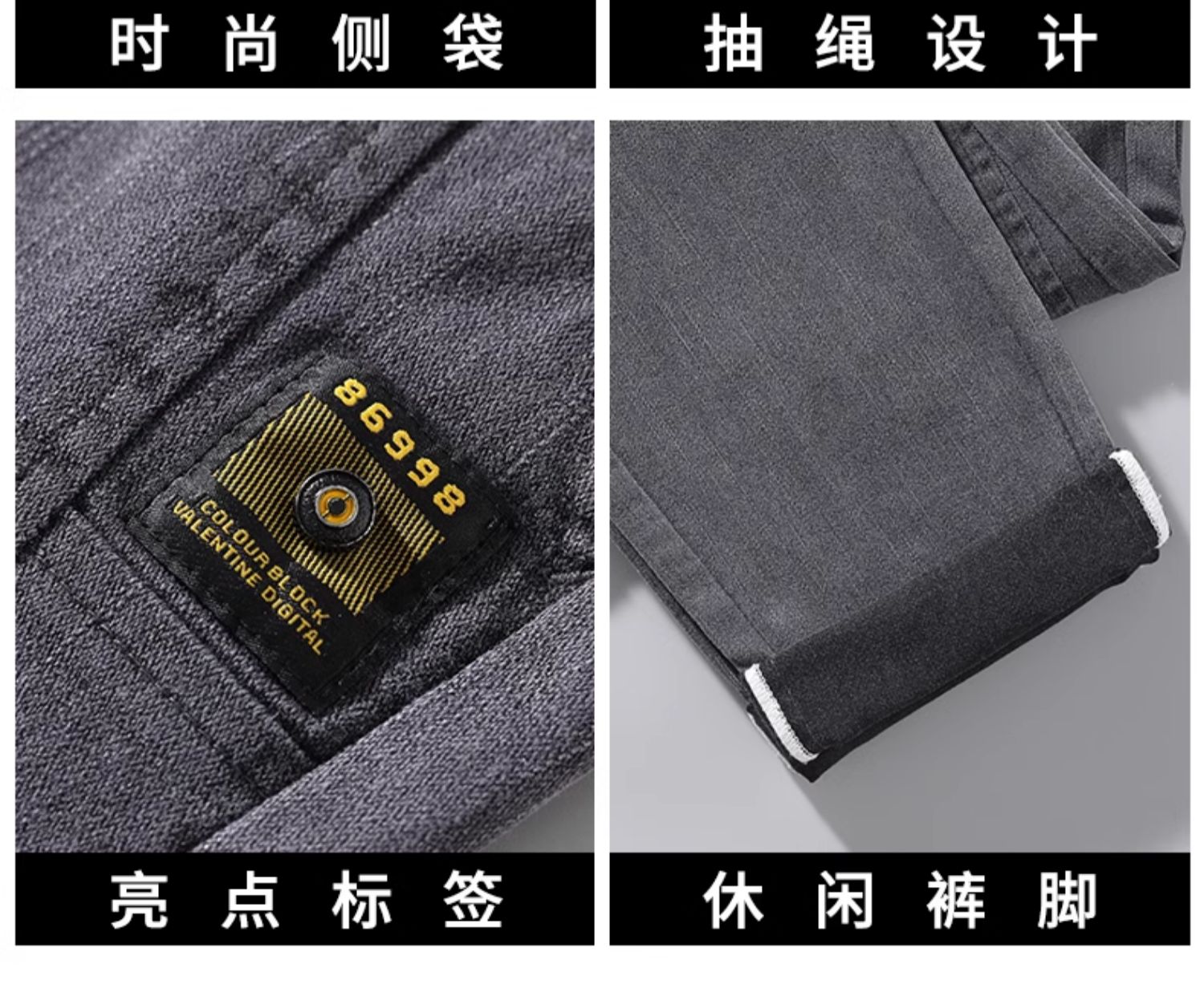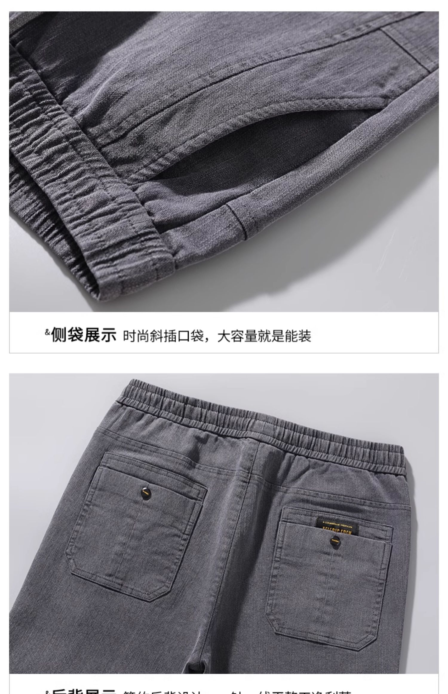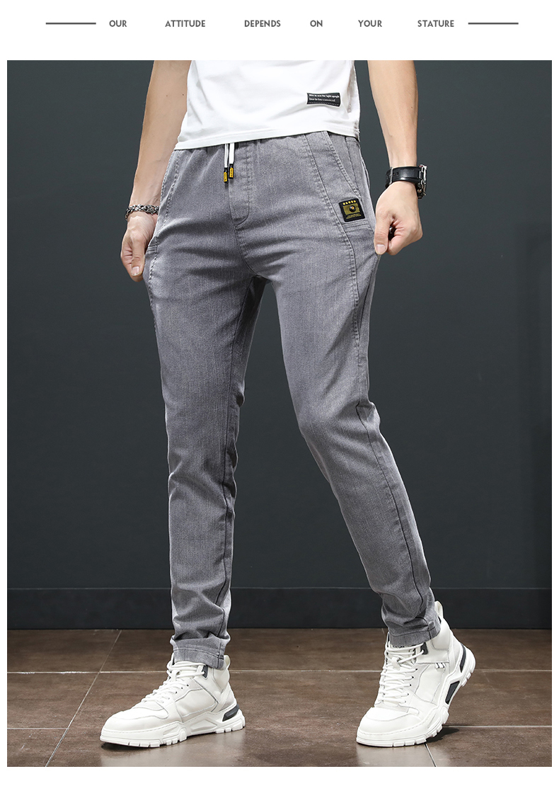 工装牛仔长裤男士2024春夏潮流松紧腰系带休闲裤夏季薄款男款