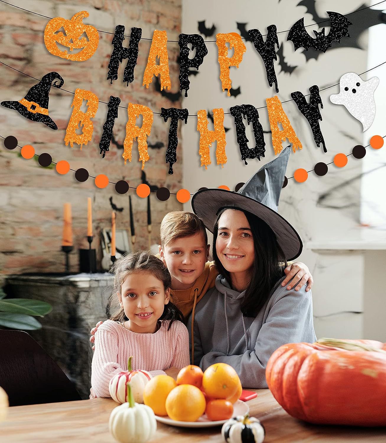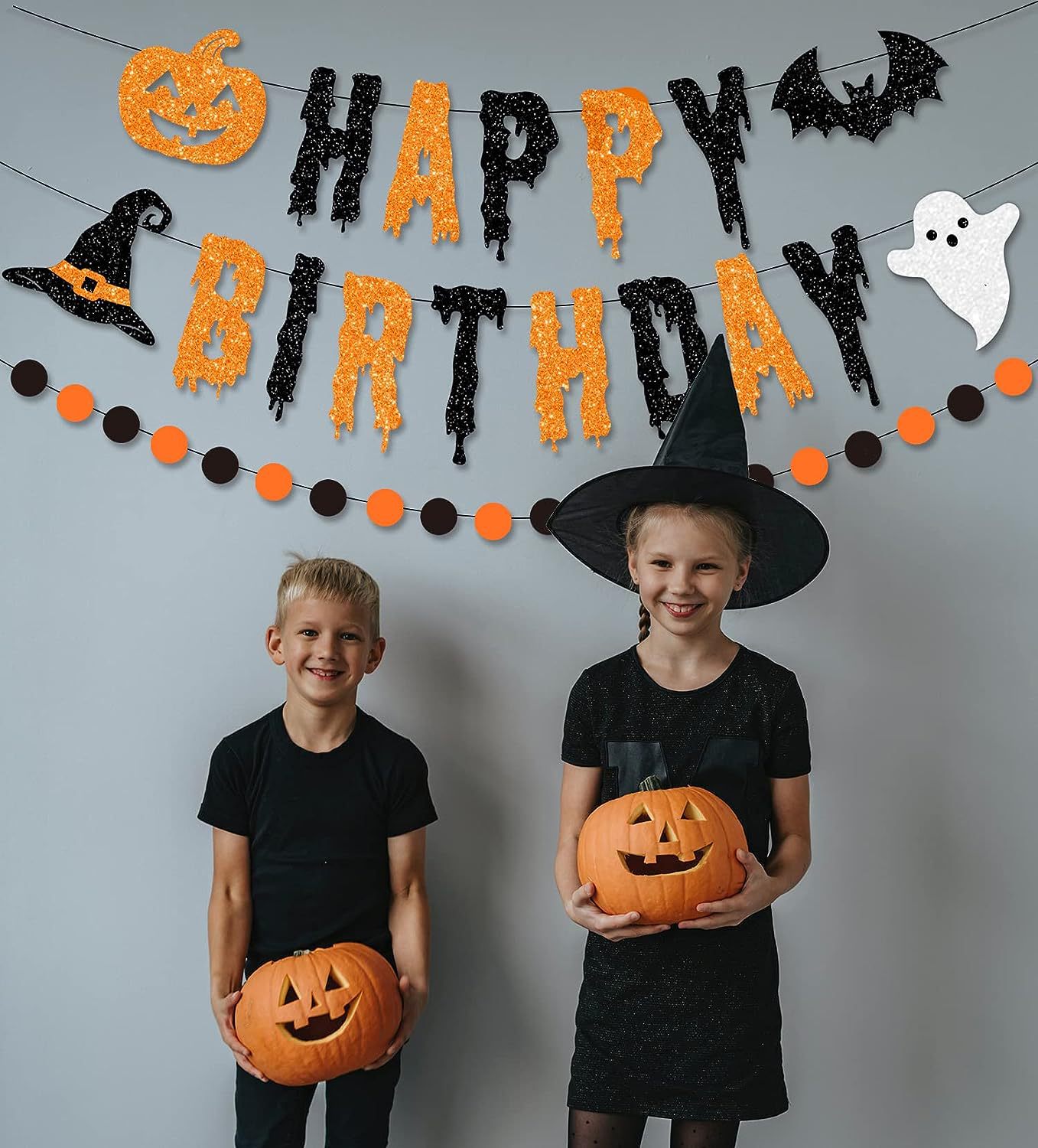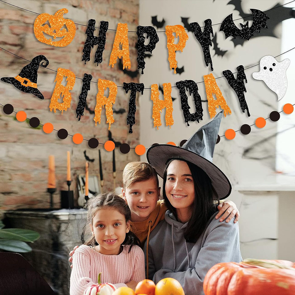 万圣节主题生日快乐纸质横幅 黑橙色万圣节生日彩旗派对墙壁装饰