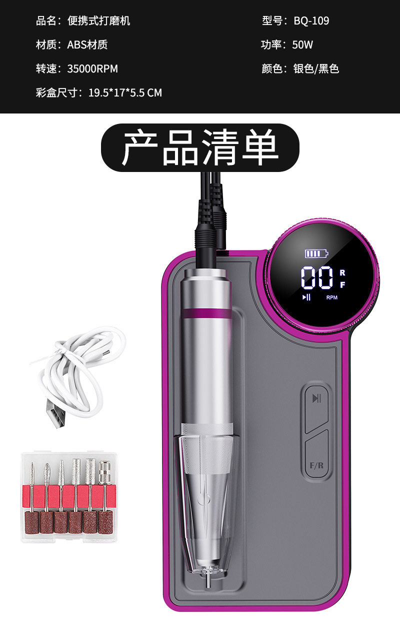 美甲打磨机家用小型便携充电款卸甲机指甲打磨机美甲店专用大功率