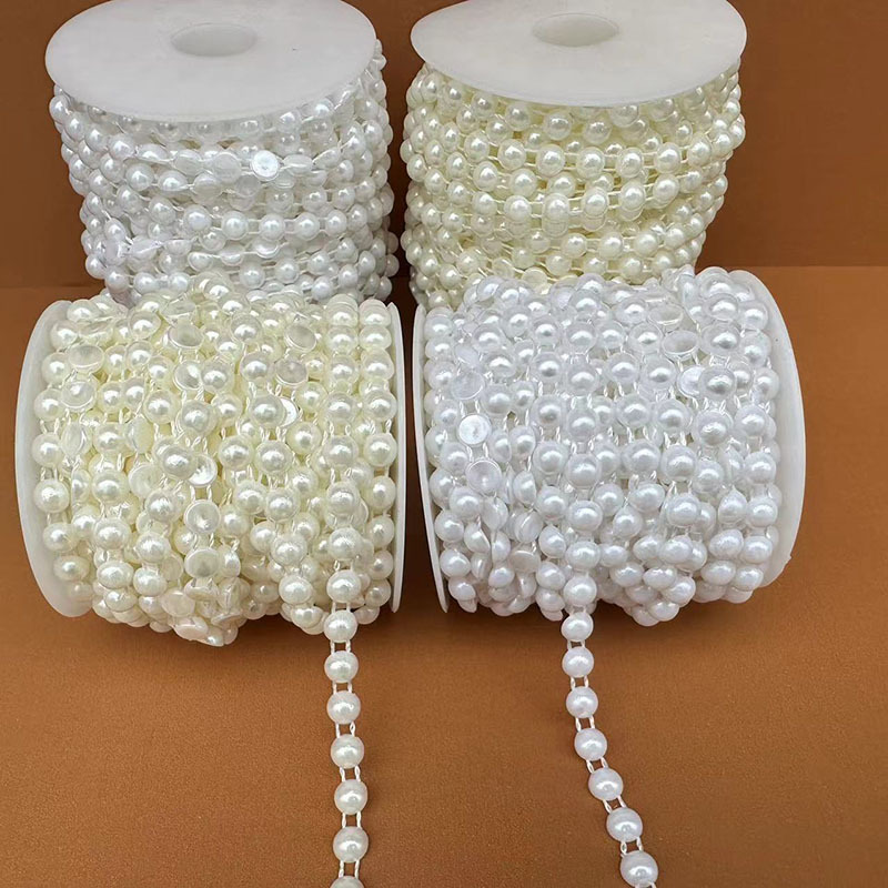 6-8mm半圆珠链婚庆长款半圆珠diy手工发饰辅料仿珍珠子花边配饰