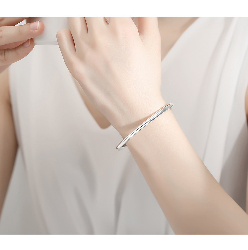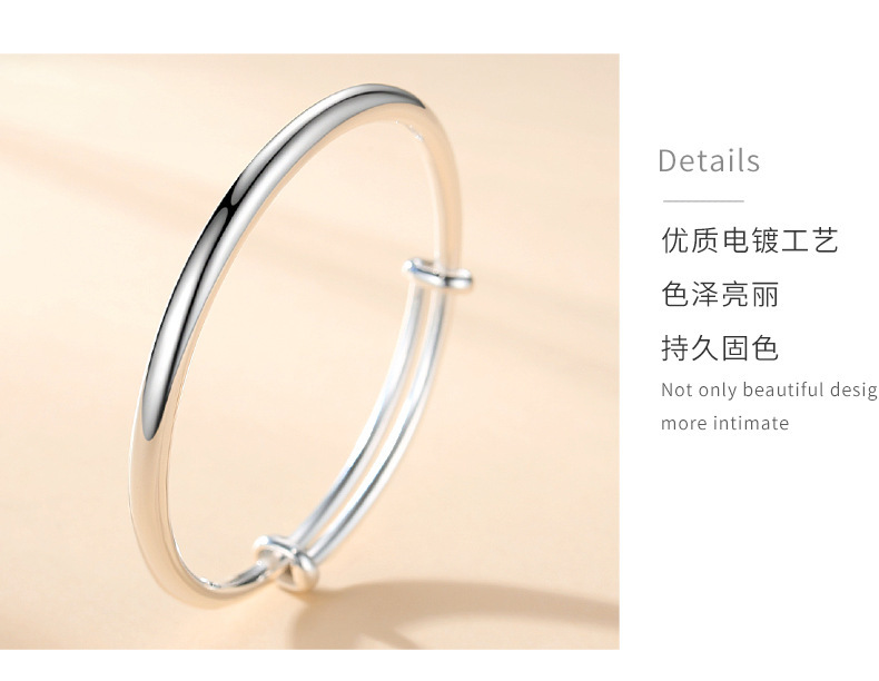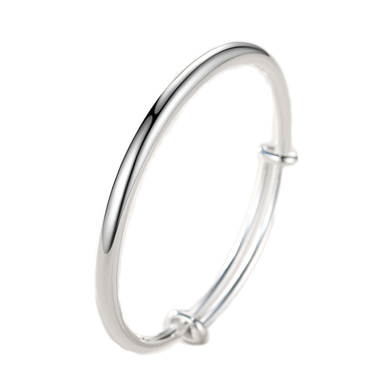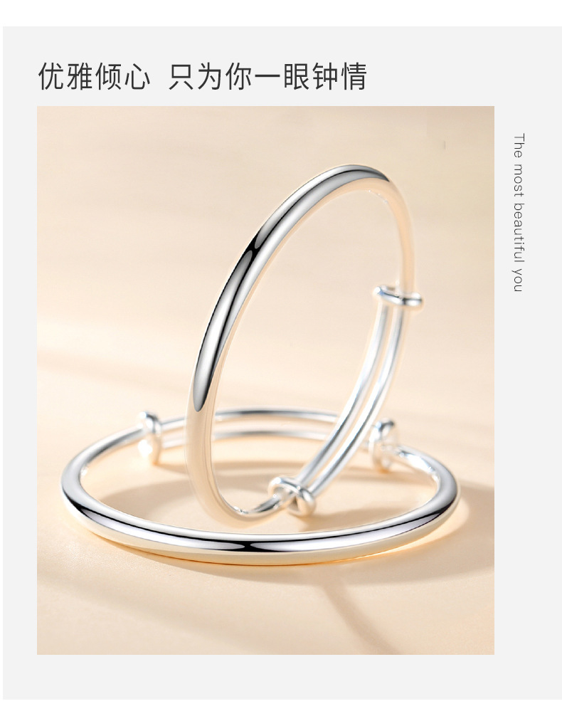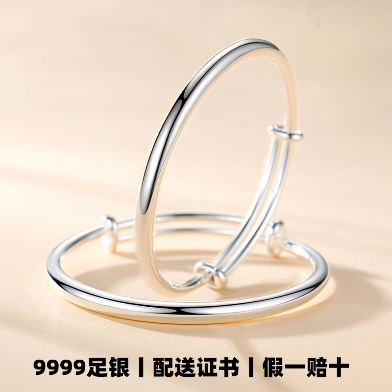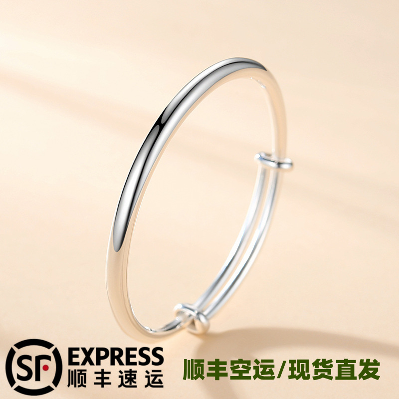 S9999纯银手镯女光面素圈圆棍手环简约百搭推拉小众实心足银镯子