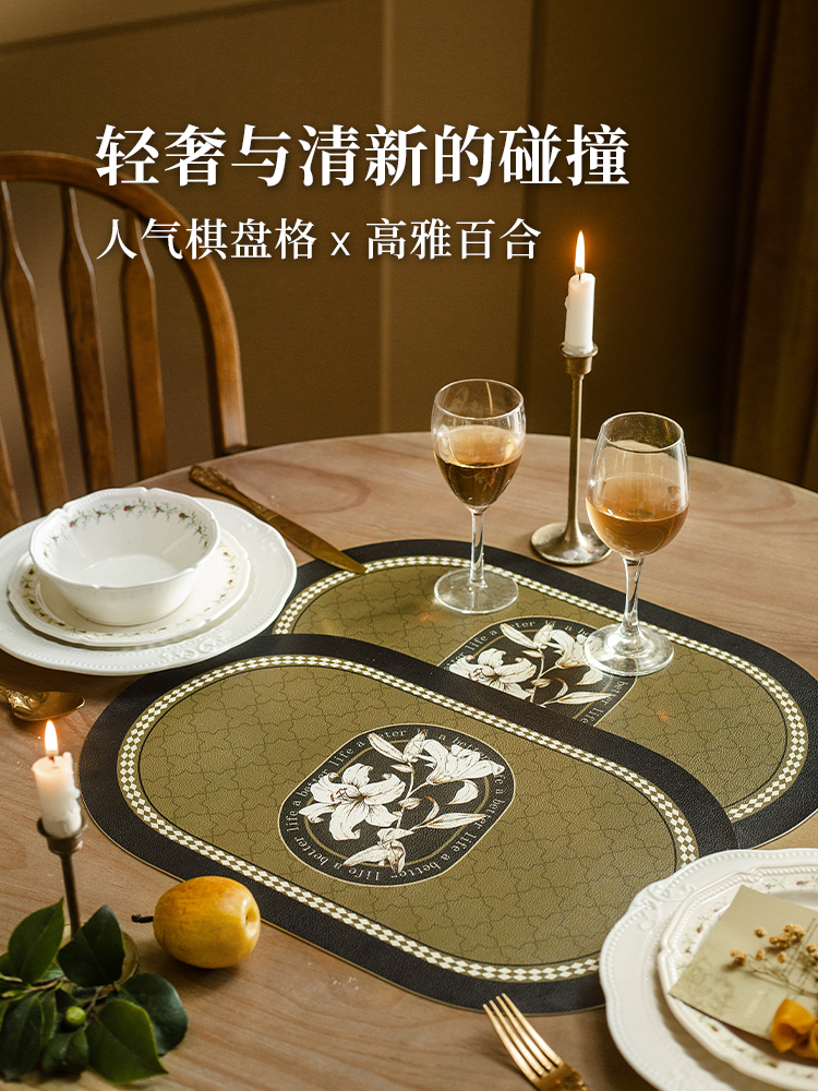 复古棋盘格皮革餐垫西餐垫盘垫防水防油网红隔热垫