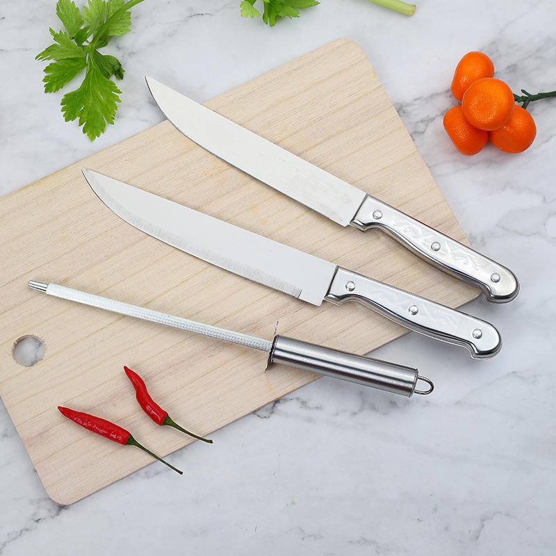 720-6PC刀具菜板套装全不锈钢剪刀水果刀厨房六件套家用木菜板