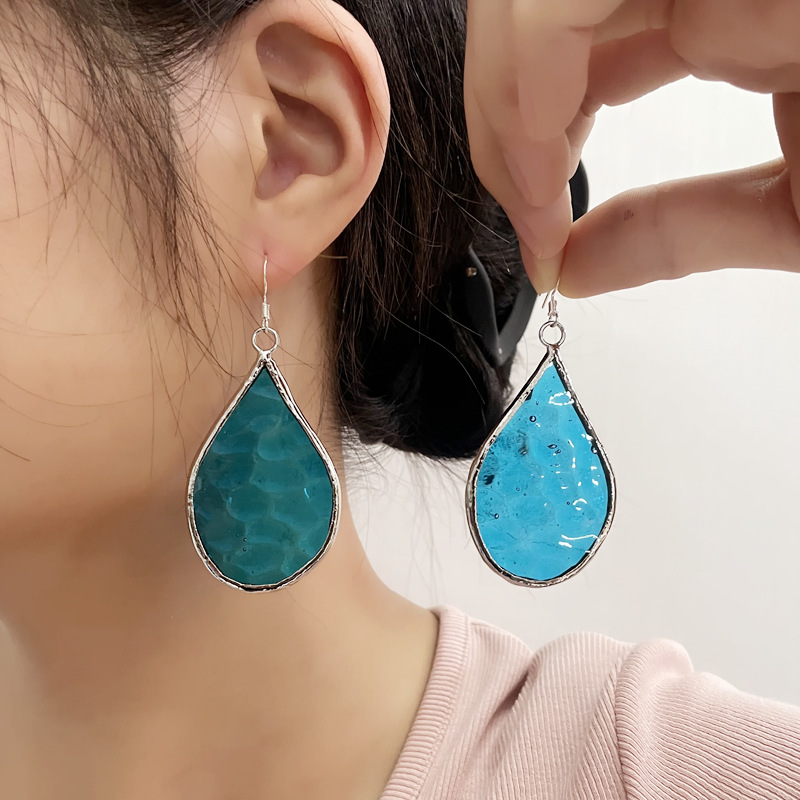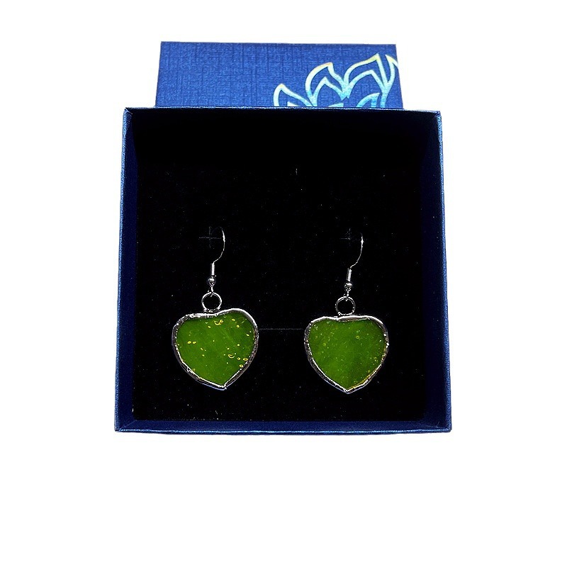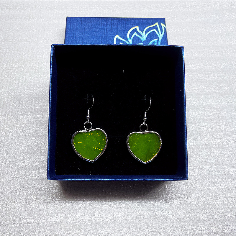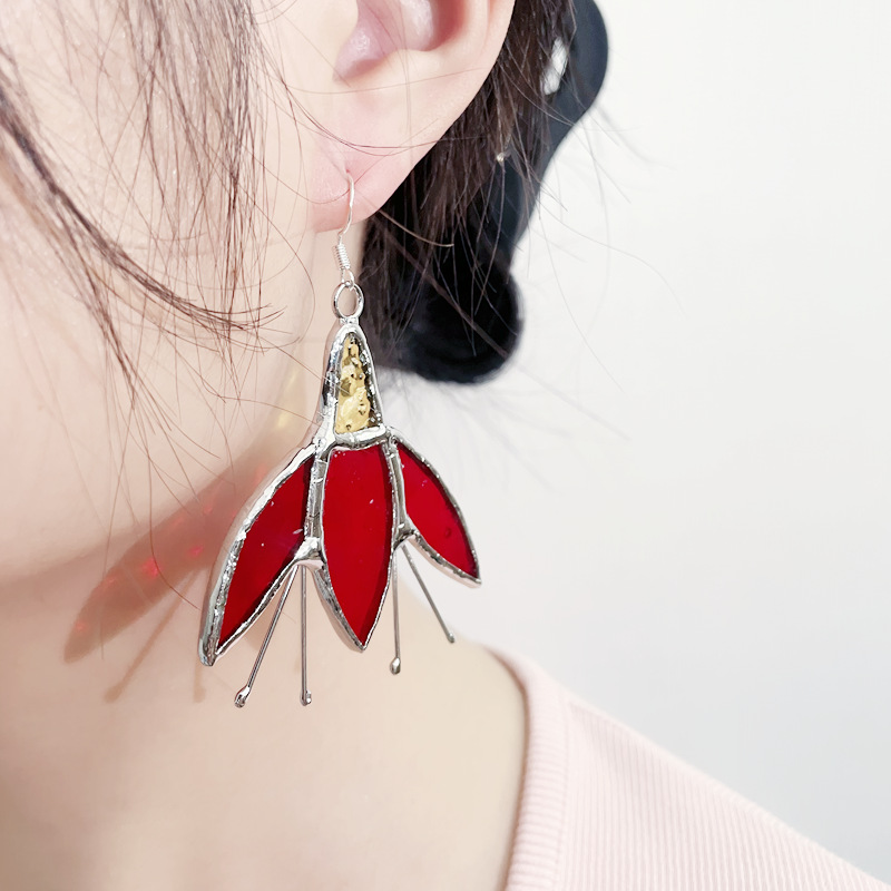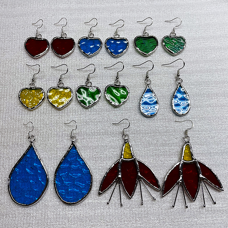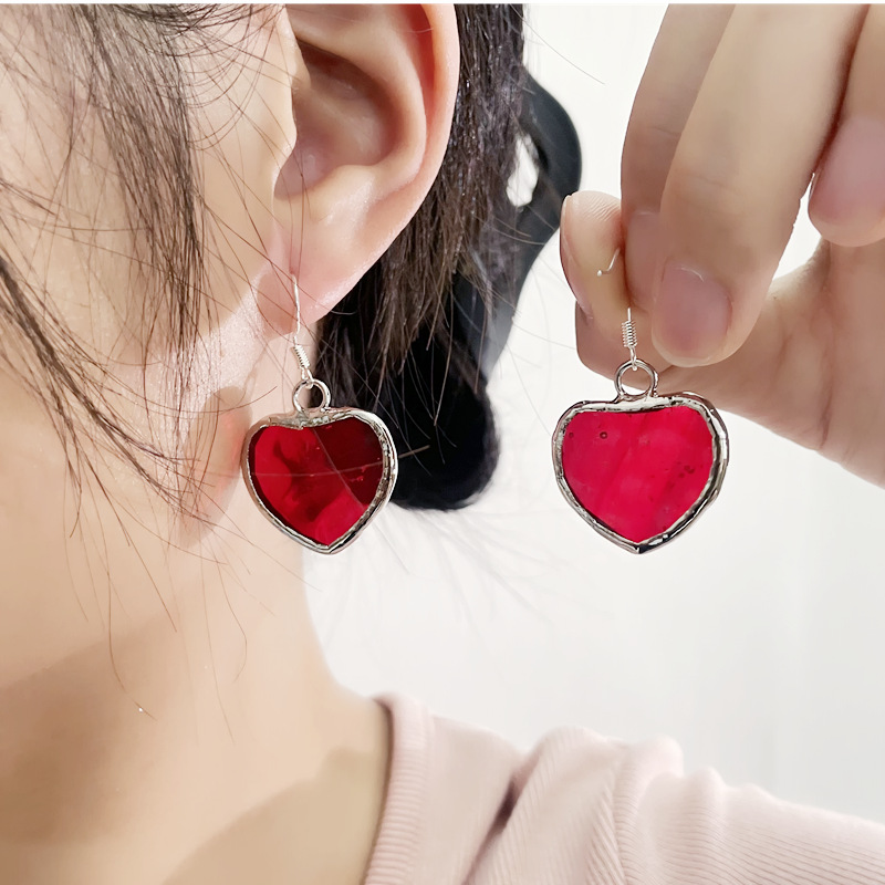 2024跨境新品彩色手工玻璃耳环透明心形耳坠节日礼品创意花朵耳饰