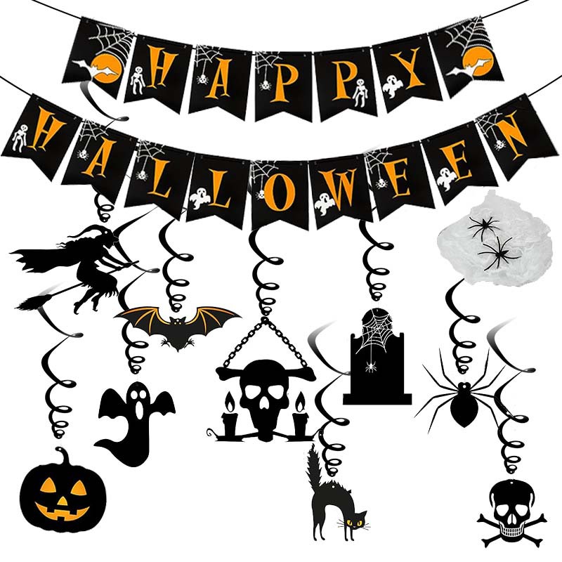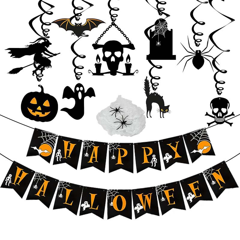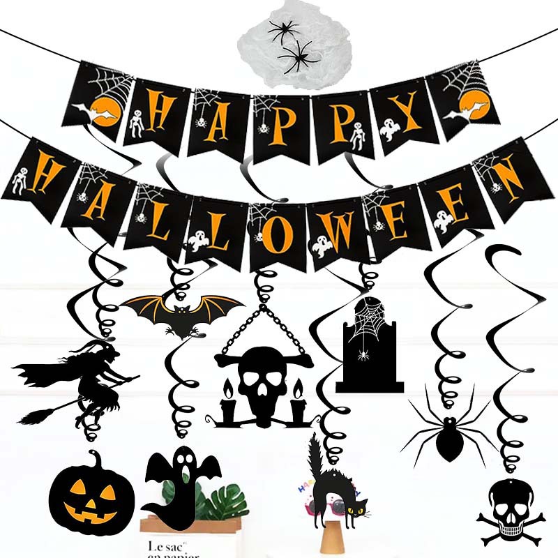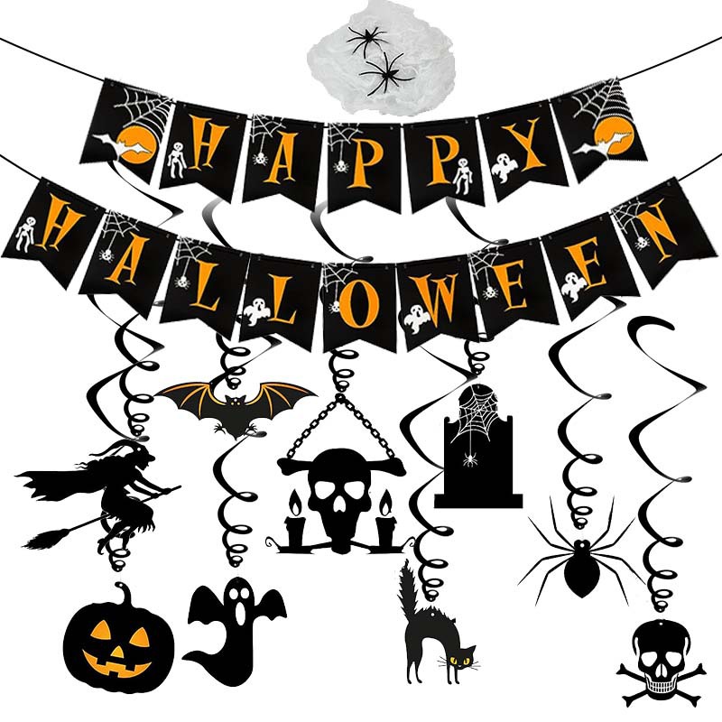 HAPPY HALLOWEEN纸燕尾旗蛛蛛棉/蛛蛛网/蛛蛛丝万圣节螺旋挂饰