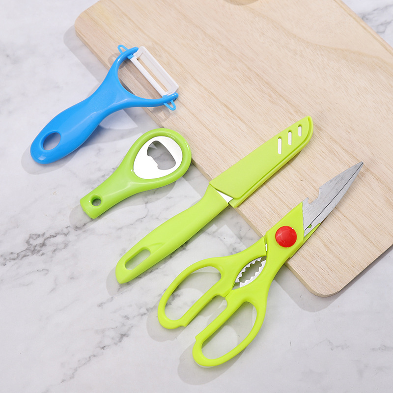工厂店856-4PC刀具四件套剪刀水果刀瓜陶瓷刨家用厨房小工具套装