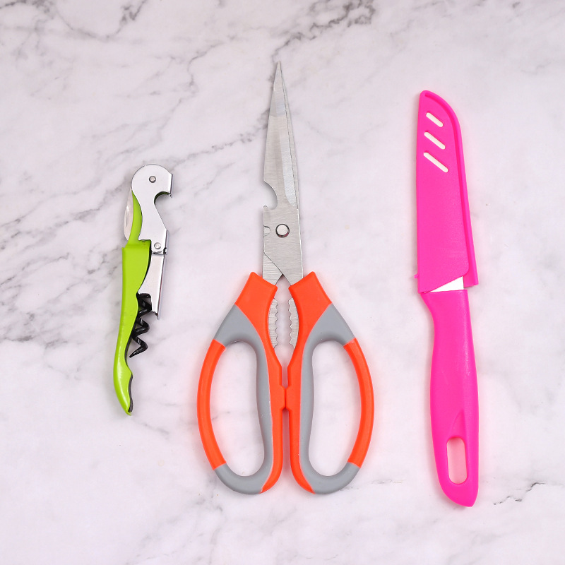 A342-3PC刀具三件套剪刀水果刀海马开瓶器家用多功能厨房套装礼品