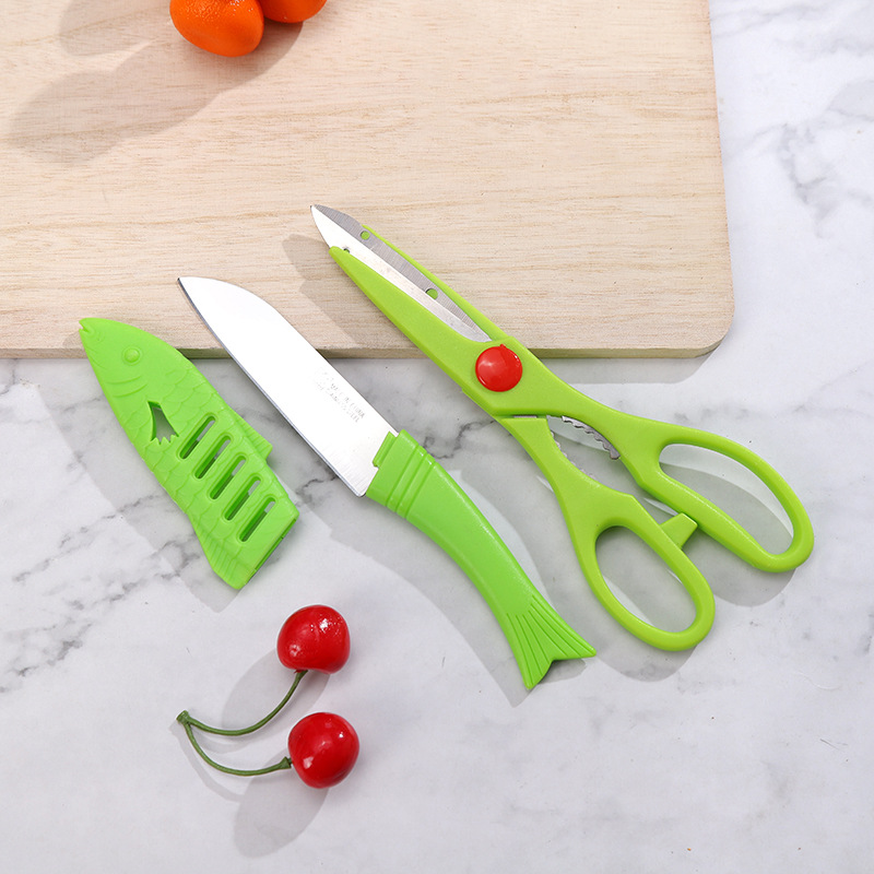 工厂店857-4PC刀具四件套剪刀水果刀瓜刨家用厨房小工具套装礼品