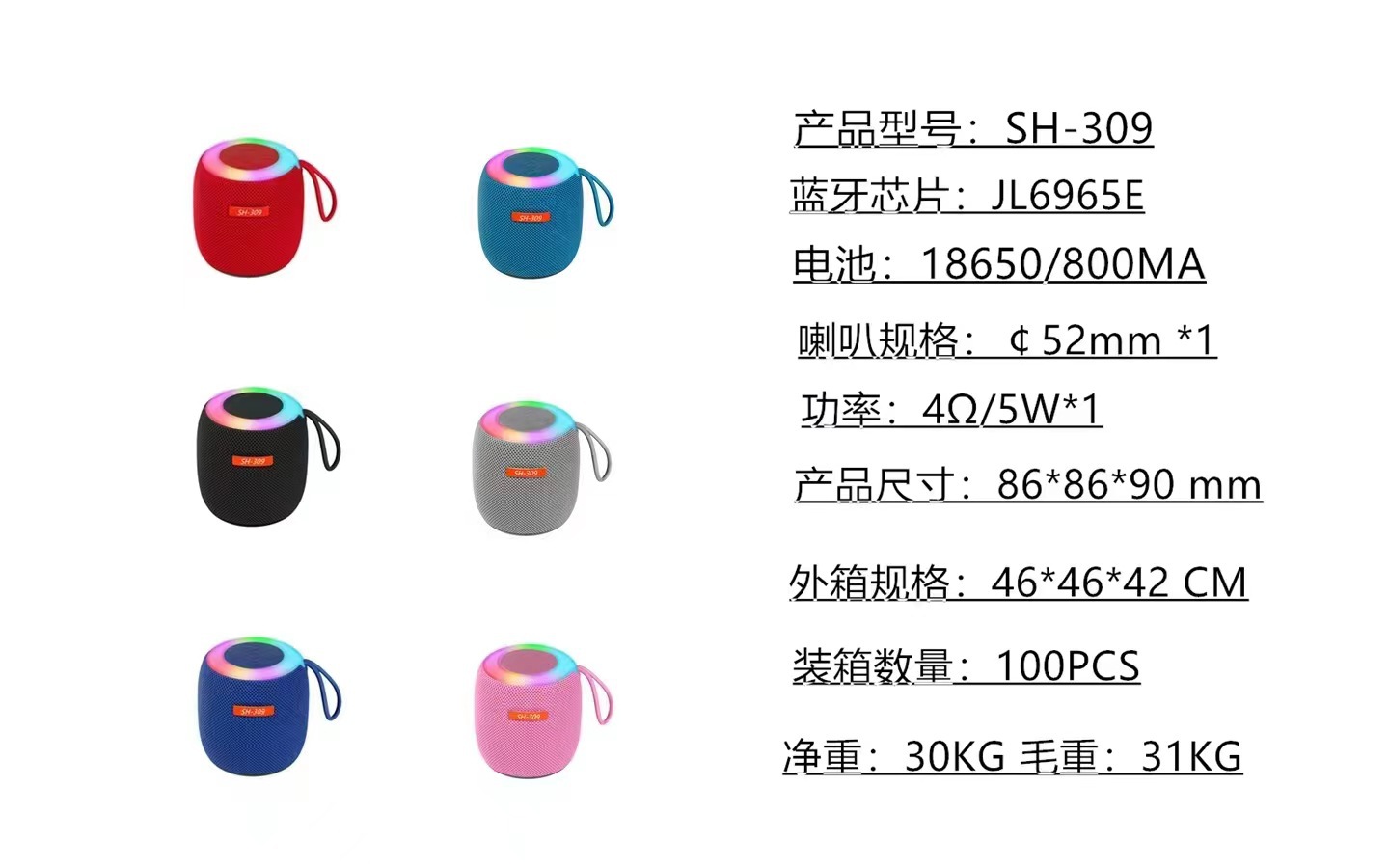 SH-309迷你无线蓝牙音响七彩RGB夜灯户外便携式布艺小低音炮音响
