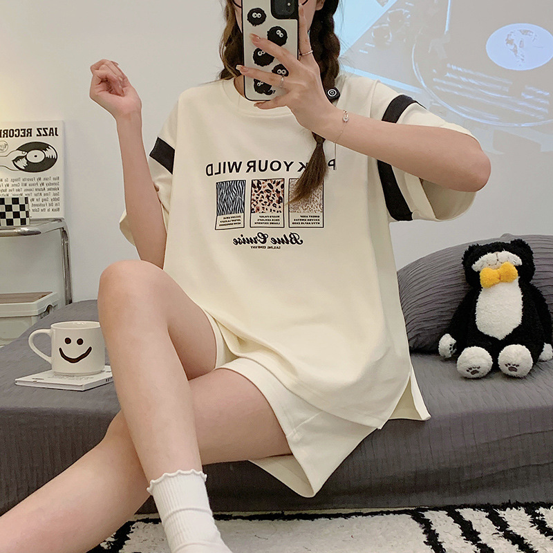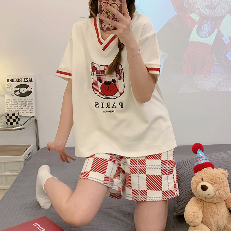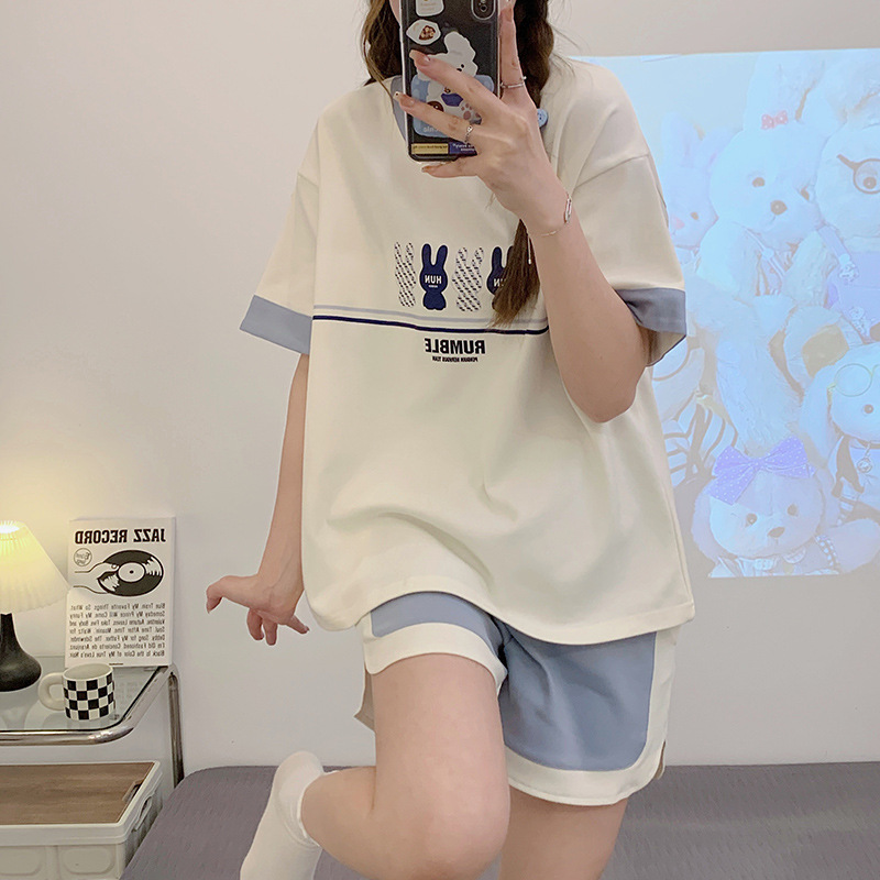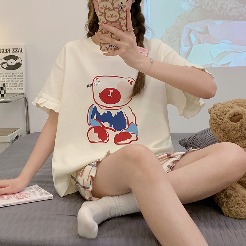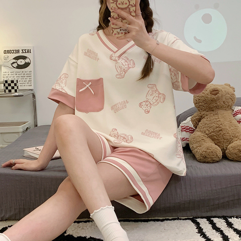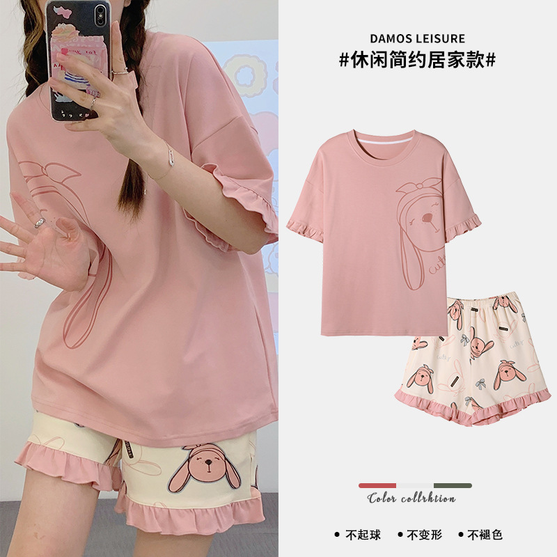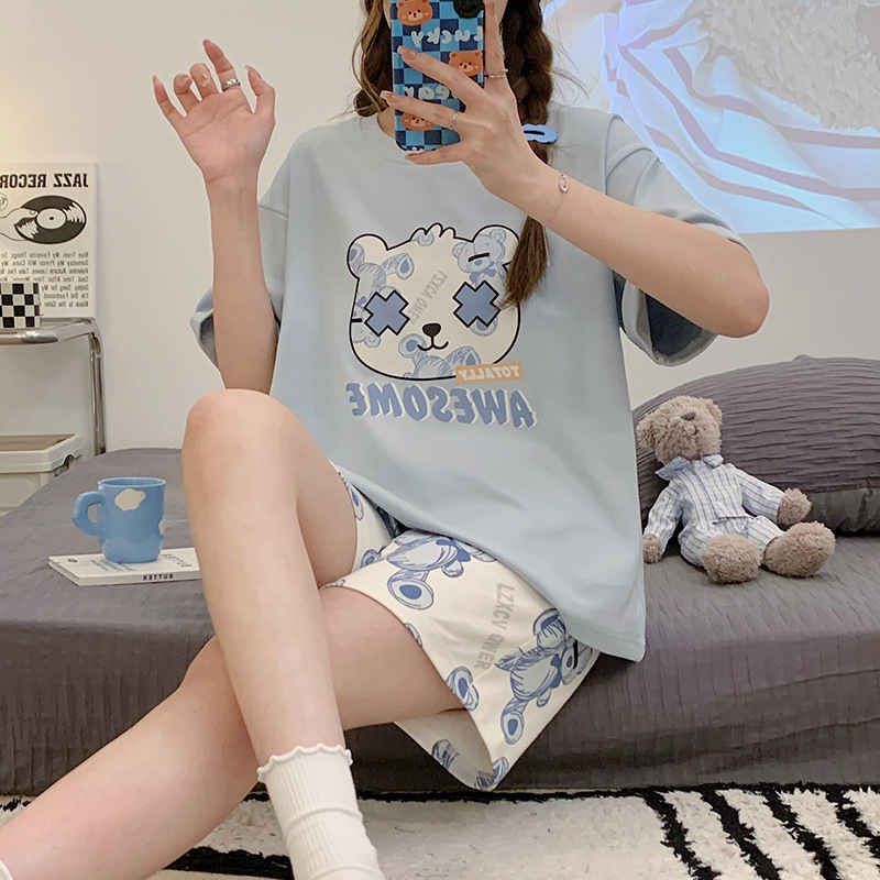 睡衣女士夏天棉质短袖短裤两件套日系休闲家居服2023年新款可外穿