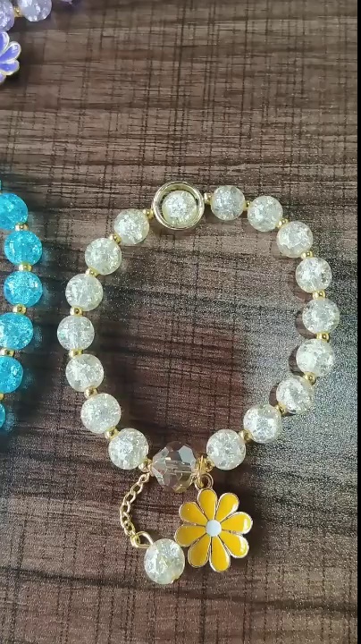 儿童水晶手链女夏天 爆花粉晶串珠情侣学生手串小雏菊不掉色手链