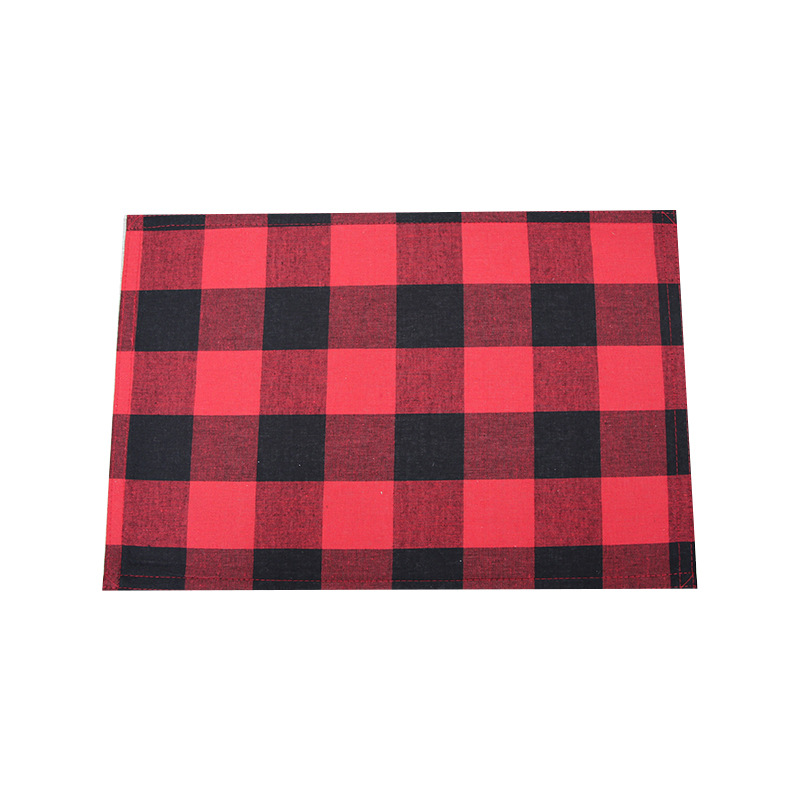 跨境圣诞红黑格子餐垫双层格子盘垫涤棉布西餐巾30X45cm尺寸代发
